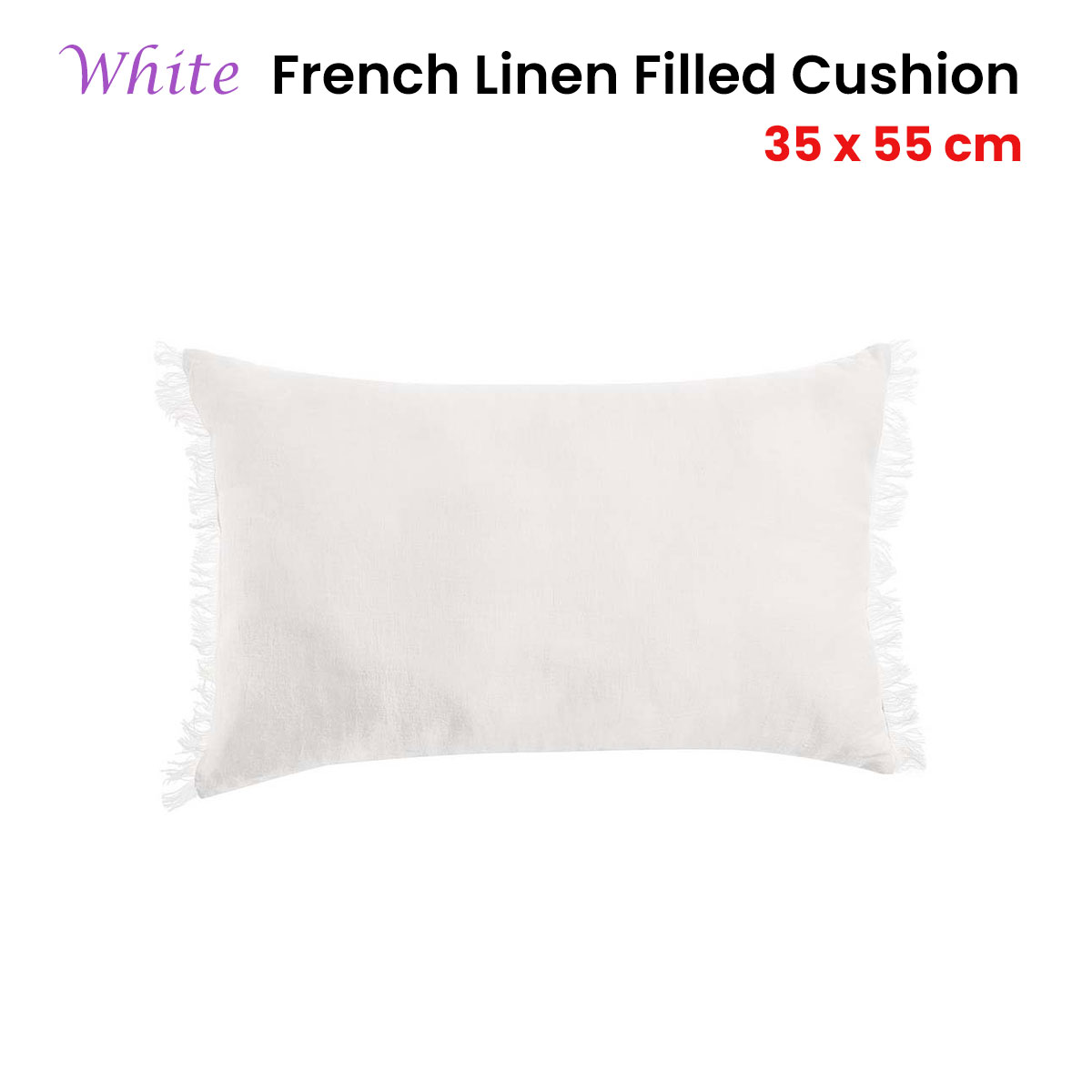Vintage Design Homewares White French Linen Filled Cushion Oblong – 35cm x 55cm