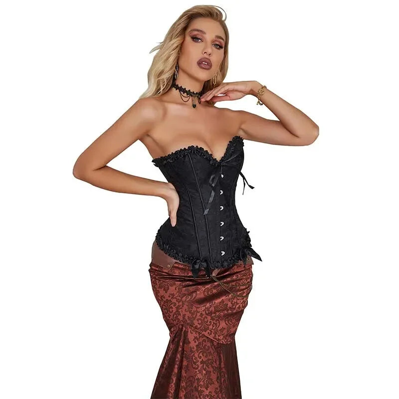 Vintage Lace Overlay Corset With Bowknot Detail Lace Up Bone Pleated Mesh Women – Xxxl