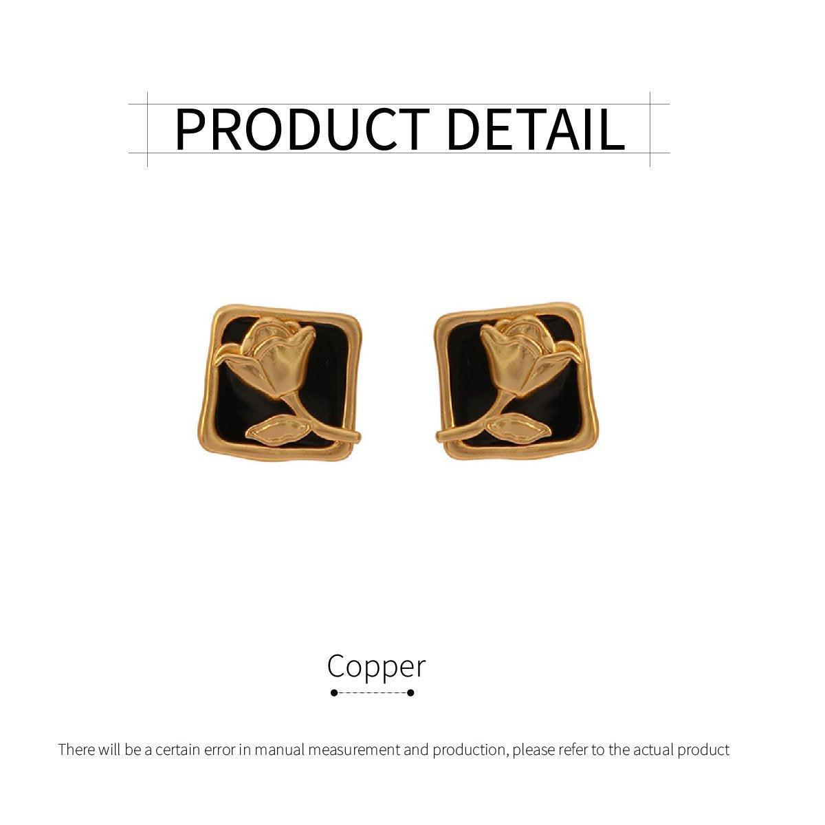 Vintage Matte Black Rose Square Stud Earrings Elegant Fashion Jewelry Women