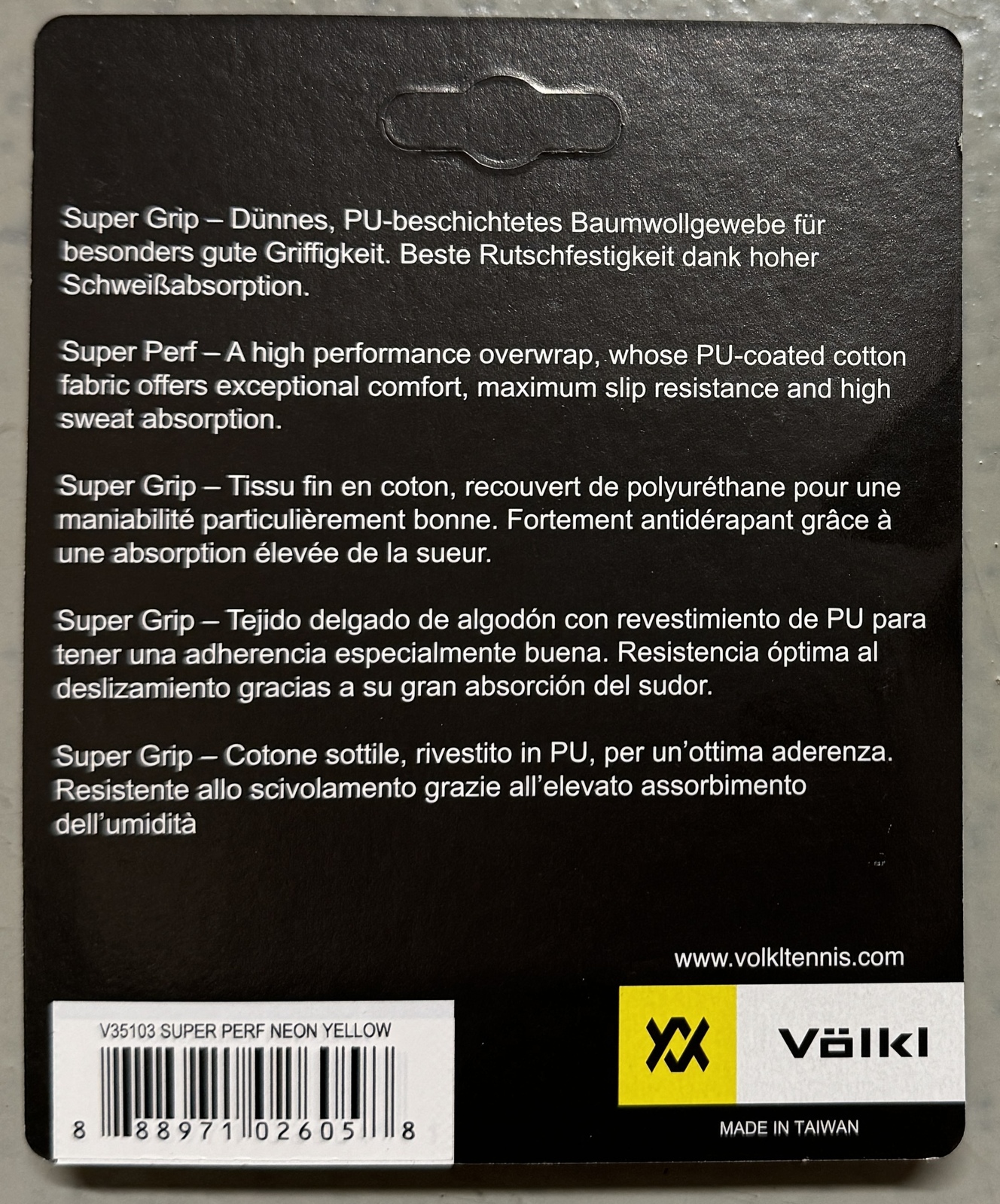 Elevate your performance with the Volkl Super Perf Over Grip, an ultra-thin, PU-coated overgrip designed specifically for athletes who demand the best in grip and durability. This high-performance overwrap, crafted from PU-coated cotton fabric, offers not only exceptional comfort but also ensures maximum slip resistance and superior sweat absorption.