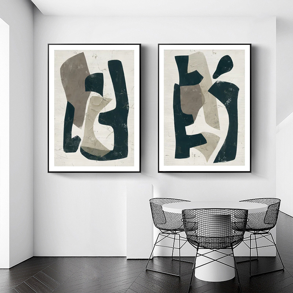 Wall Art 100cmx150cm Abstract Puzzle 2 Sets Black Frame Canvas
