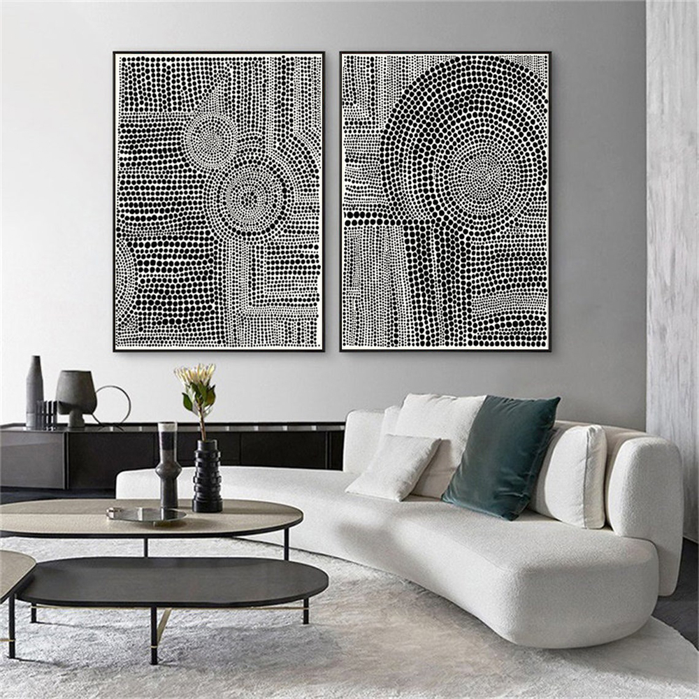 Wall Art 70cmx100cm Clustered Dots 2 Sets Black Frame Canvas
