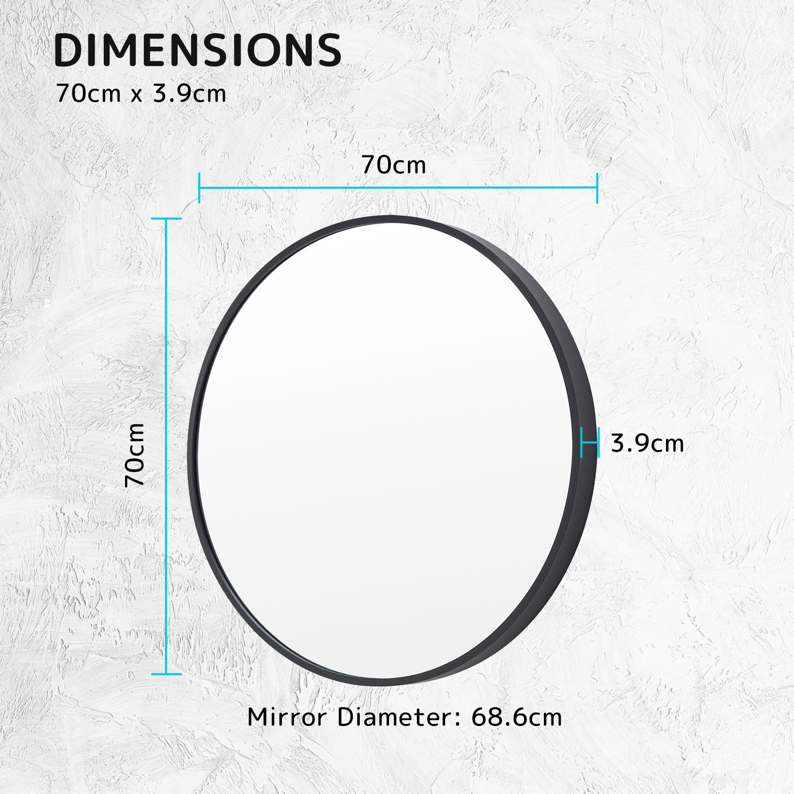 Wall Mirror Round Aluminum Frame Bathroom 70cm BLACK