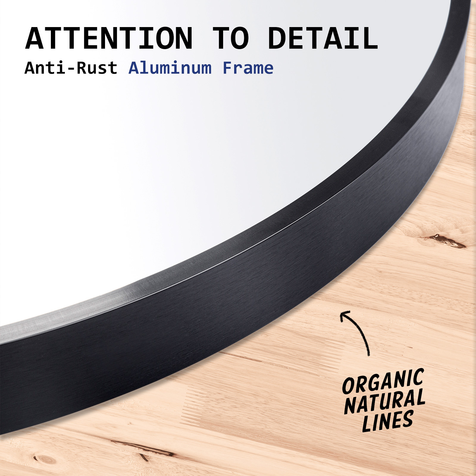 Wall Mirror Round Aluminum Frame Bathroom 80cm BLACK