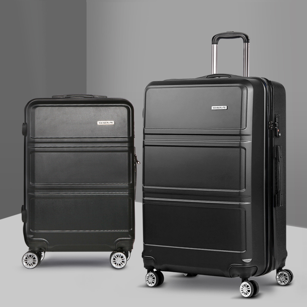 Wanderlite 2Set 20-28 Inch Luggage with TSA Lock Spinner Travel Suitcase Carry On Hard Shell Luggage Case Black