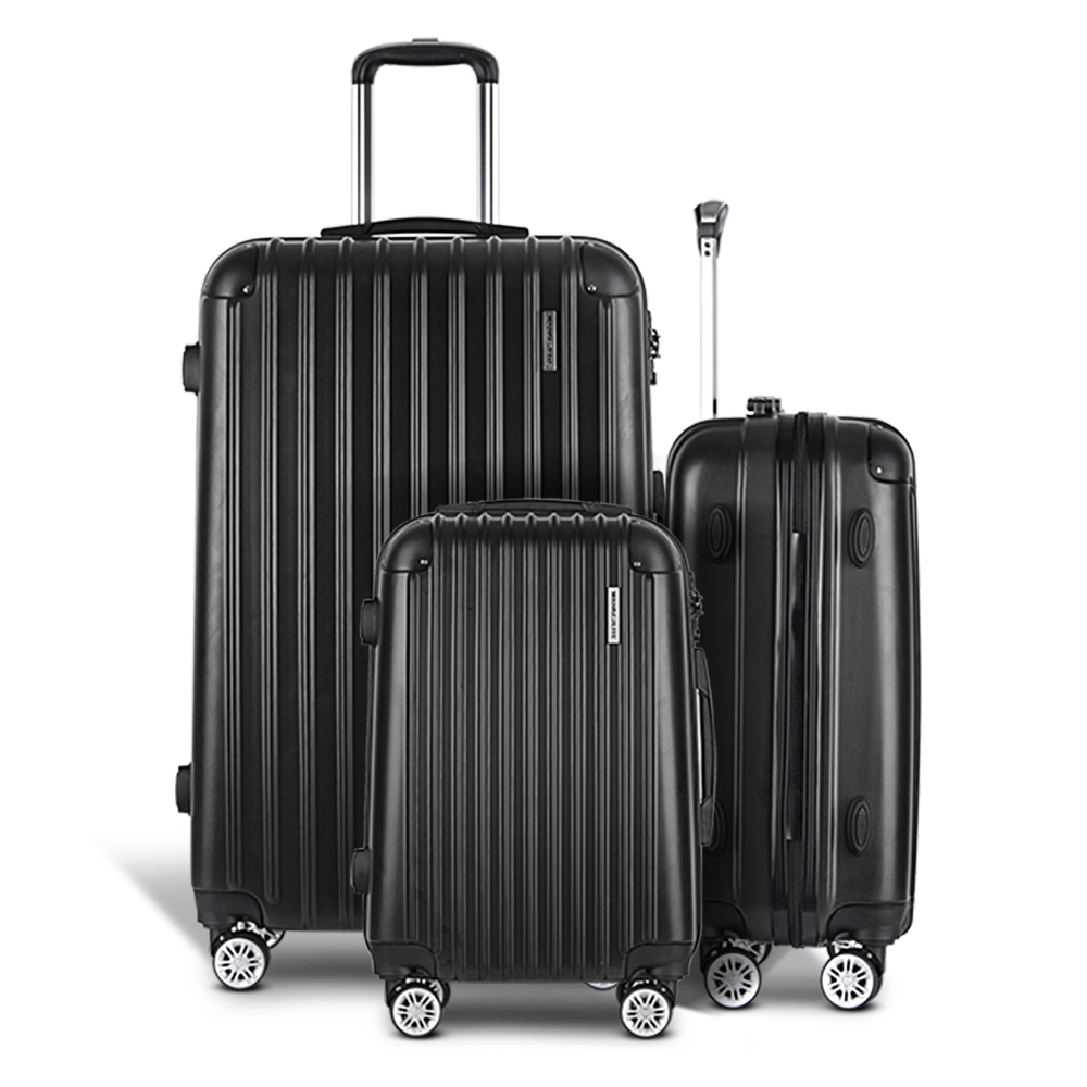 Wanderlite 3 Set Luggage 20-24-28 Inch with TSA Lock Spinner Hard Shell Travel Suitcase Luggage Organiser Case Black