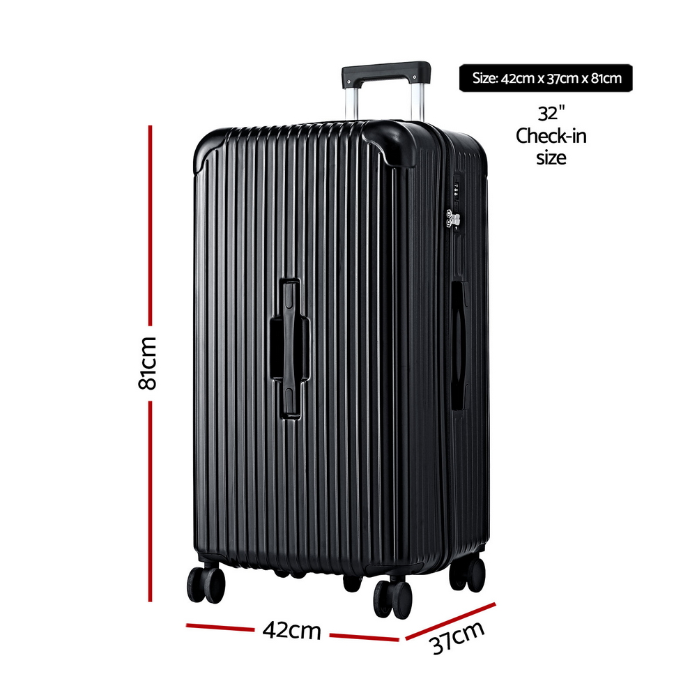 Wanderlite 32″ Trunk Luggage Suitcase Travel 5 Wheels Type-C Port TSA Black