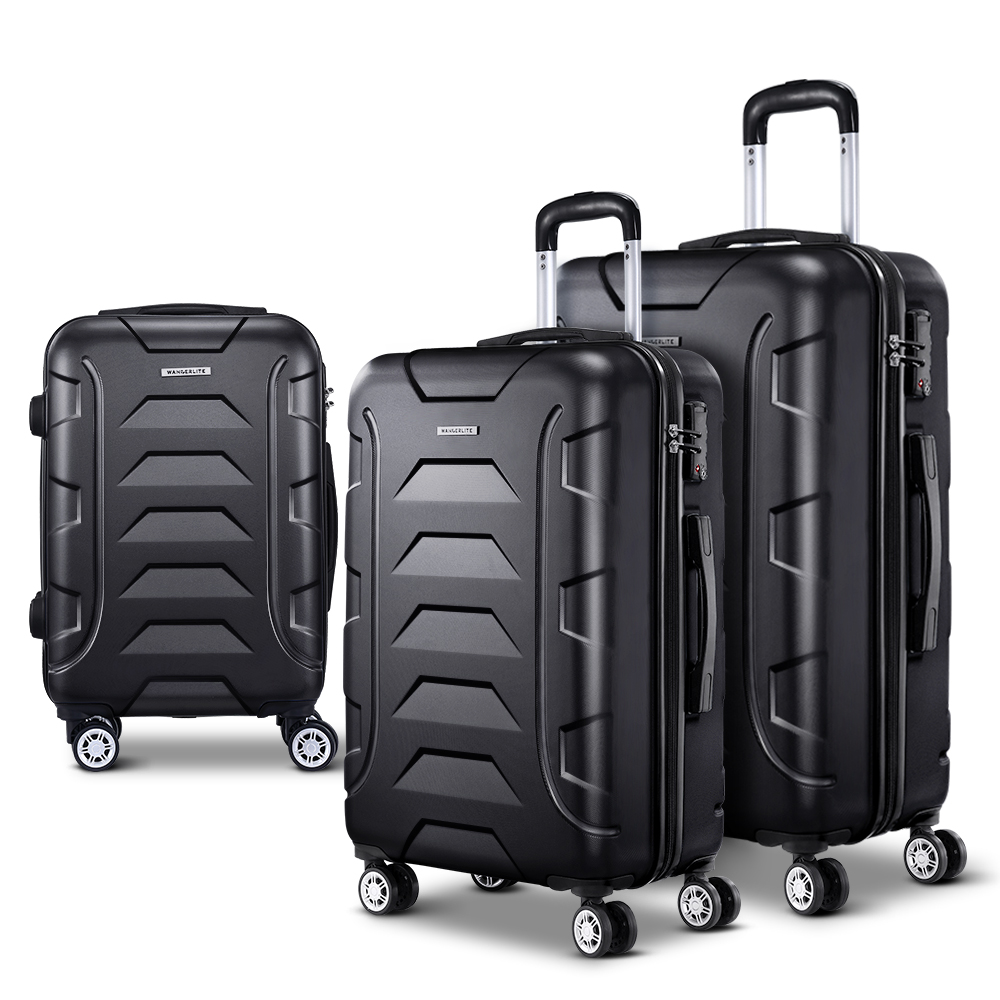 Wanderlite 3Set 20-24-28 Inch Luggage with TSA Lock Spinner Carry On Hard Shell Travel Suitcase Luggage Case Black