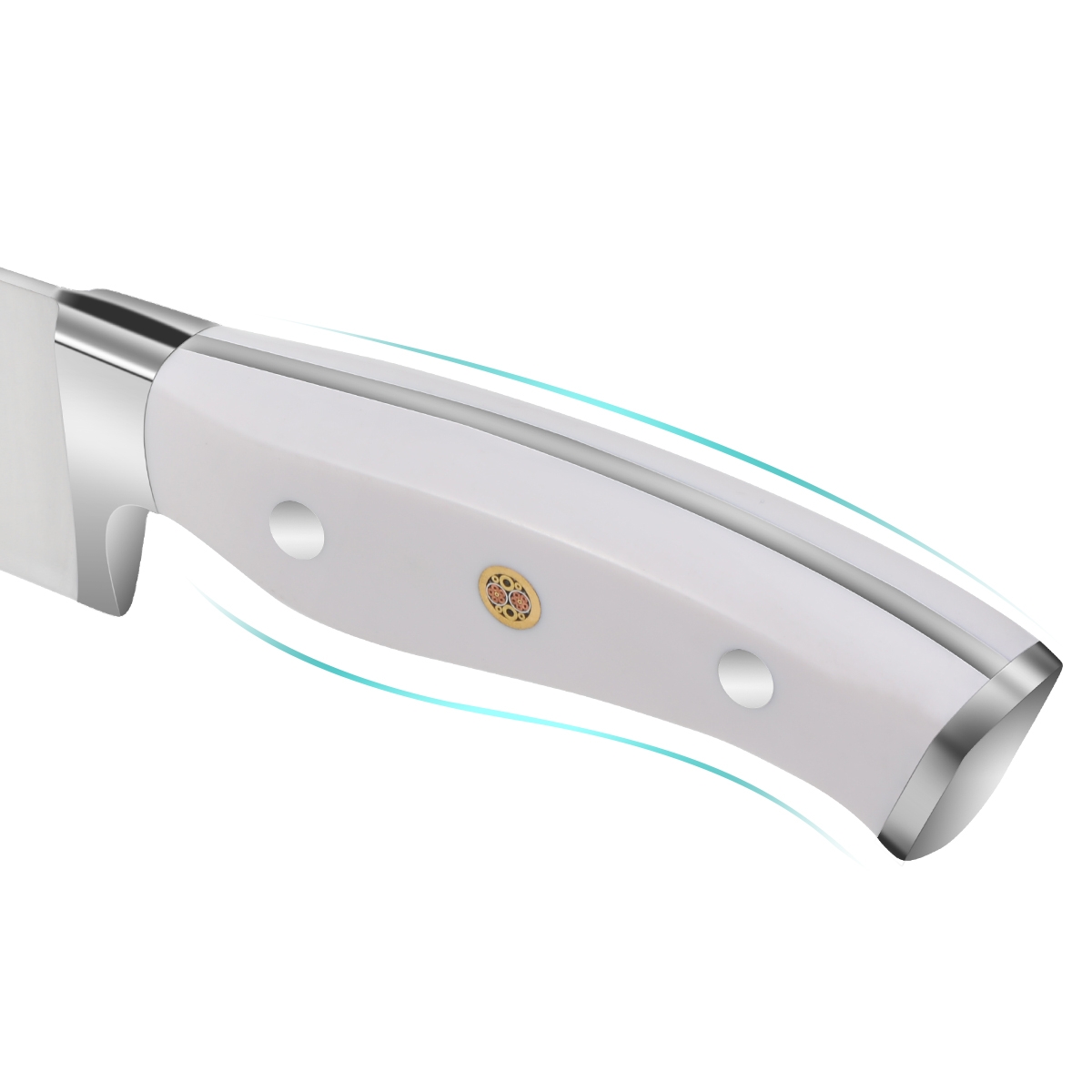 One piece full-tang blade and the ABS classic triple-riveted to ensure the durability and reliability of chefs knife, since they won’t shrink, crack or falls off. The ergonomic handle design result in a comfortable grip that minimize fatigue while maximizing cutting accuracy.