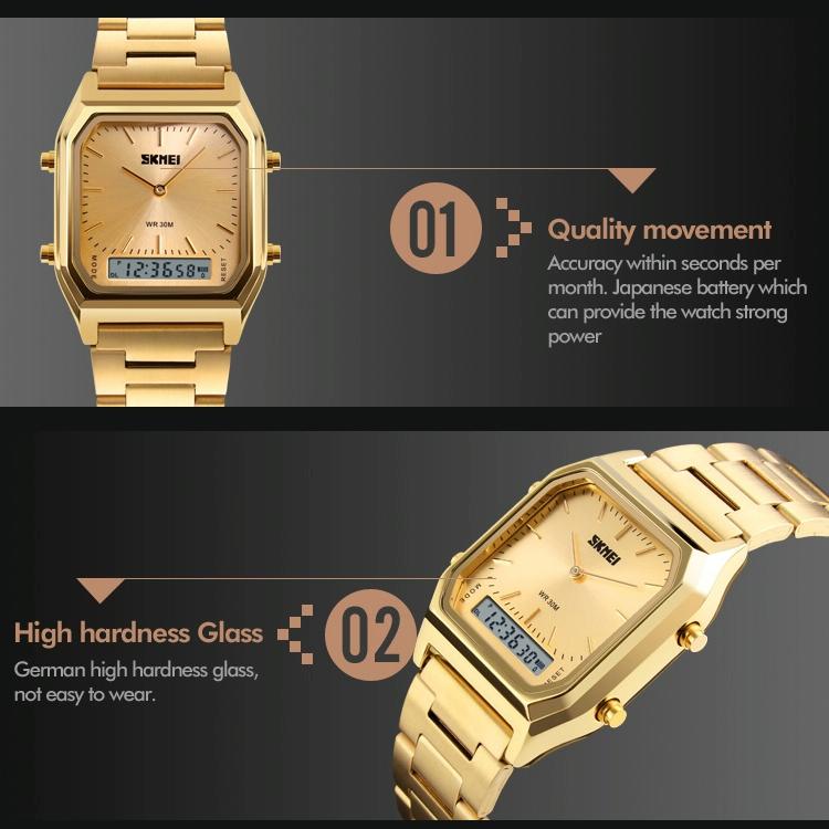 • 1 x 1220 Multifunctional Men Outdoor Business Noctilucent Waterproof Double Display Steel Watchband Wrist Watch