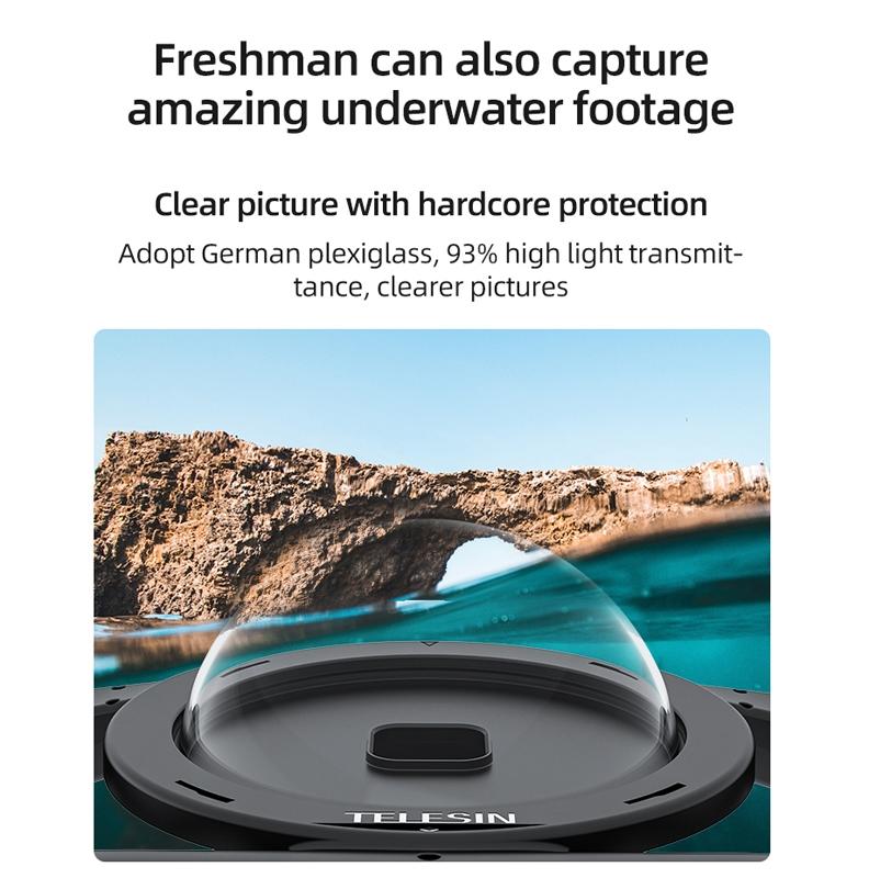 • Two 1/4 ports and three cold shoe ports are connected externally, which can be connected to diving fill lights, magic hands and other equipment