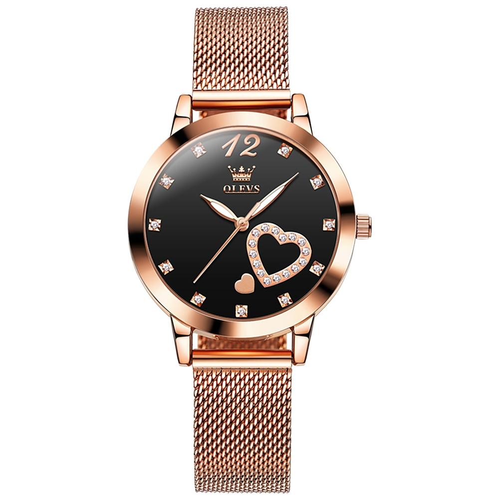 Waterproof Heart-shaped Women Quartz Watch – Black