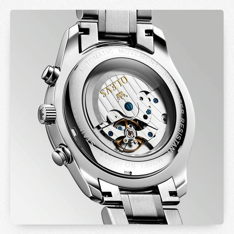 Waterproof Luminous Mechanical Watch for Men – Multifunction – Steel Band + White
