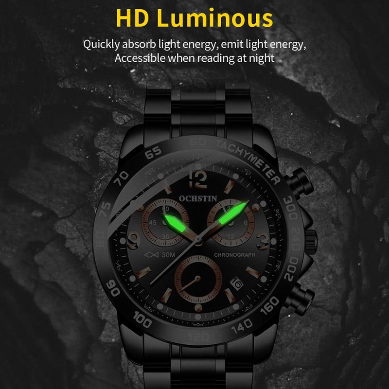 Waterproof Luminous Men Watch with Steel Strap – Silver Black