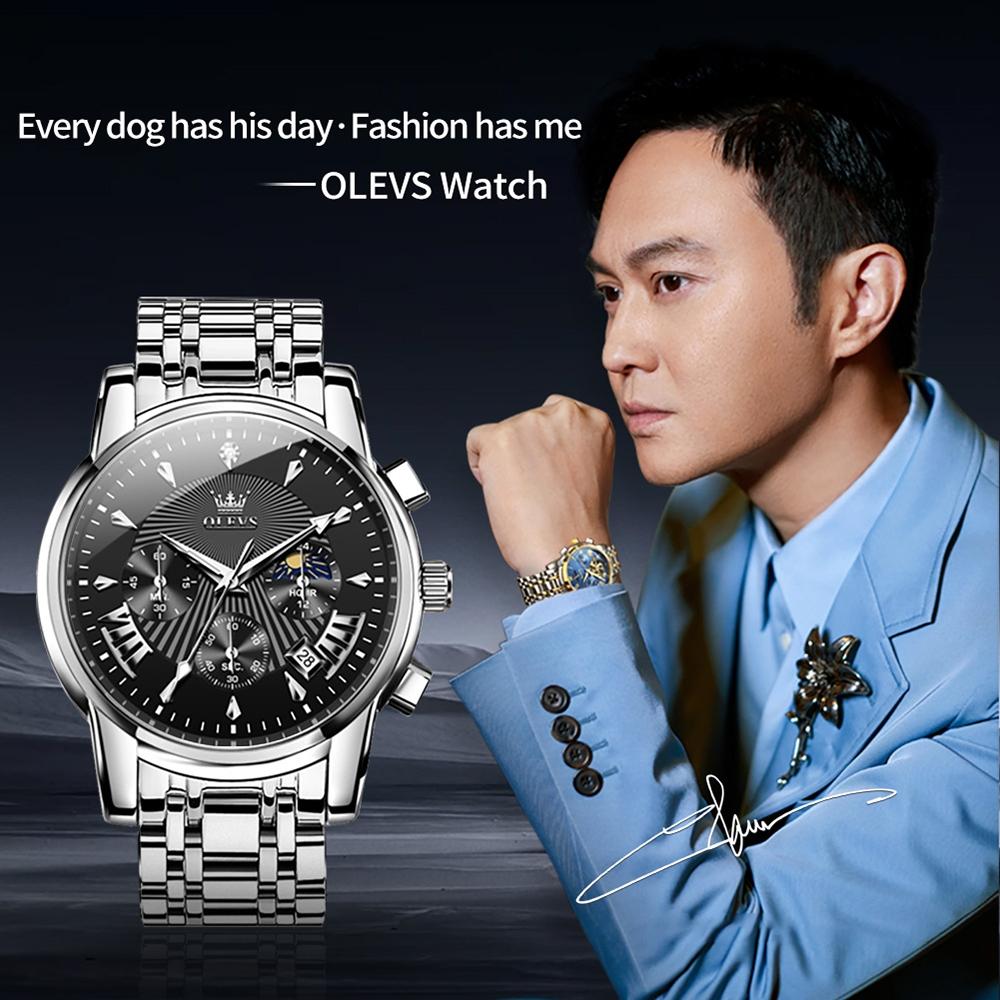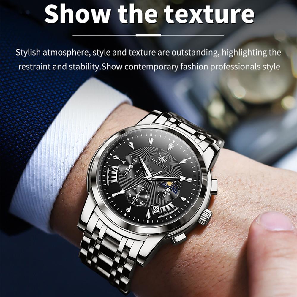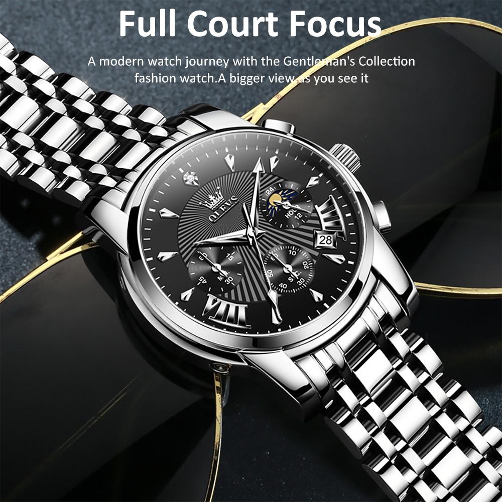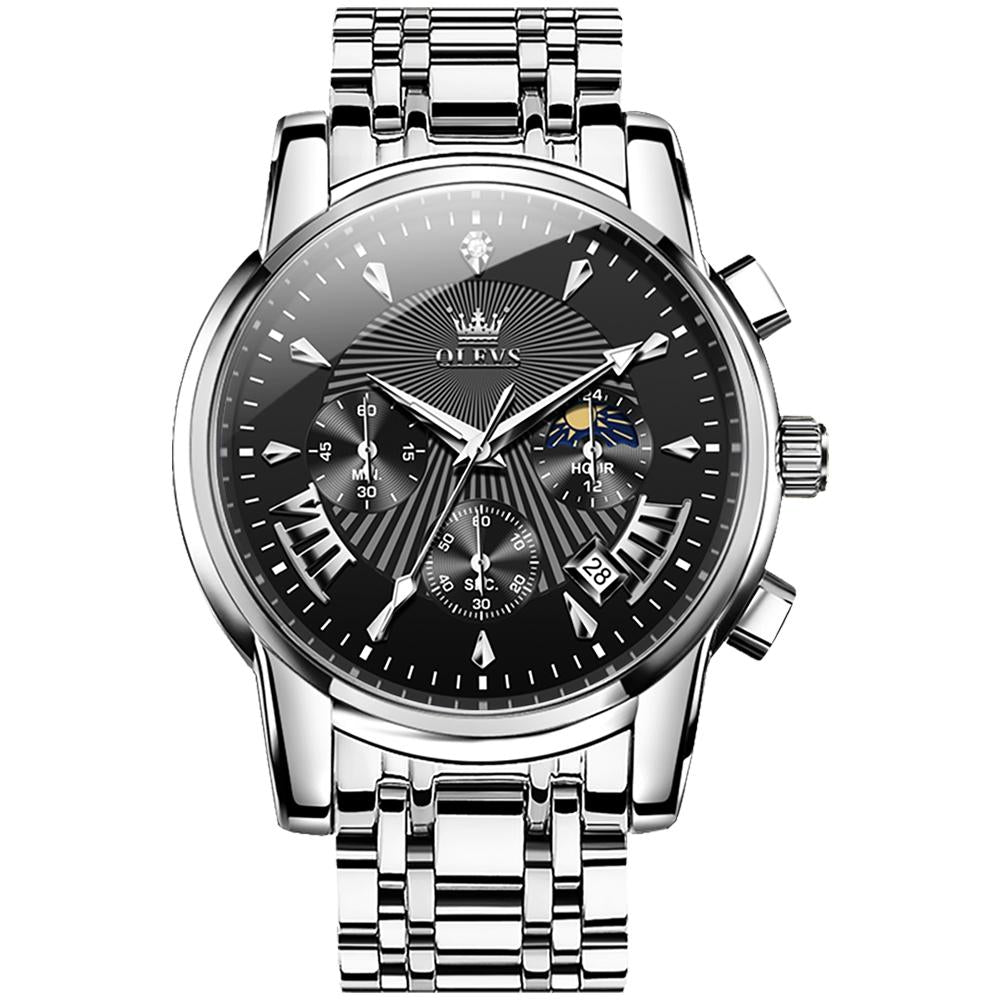 Waterproof Men Quartz Watch – Multifunctional Business Design – Black + Silver