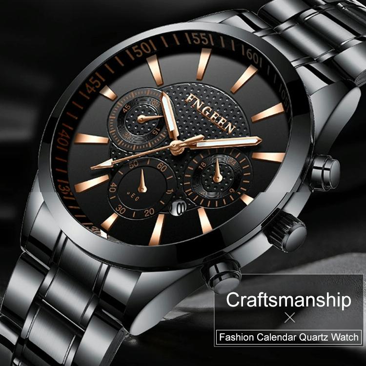 Waterproof Men Watch with Luminous Six-needle Design – Black Steel Black