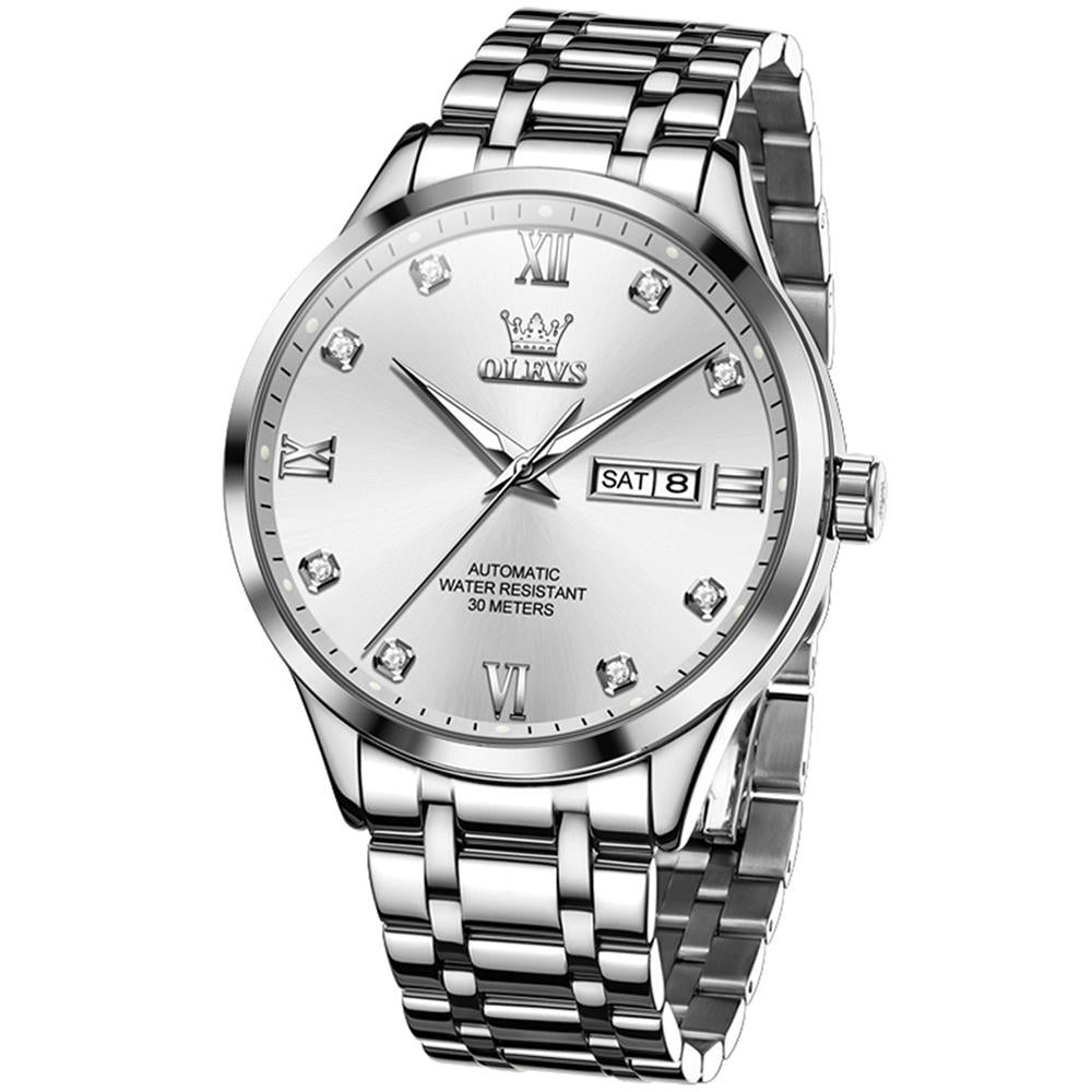 Waterproof Quartz Watch with Diamond Roman Scale for Men – Black + Silver