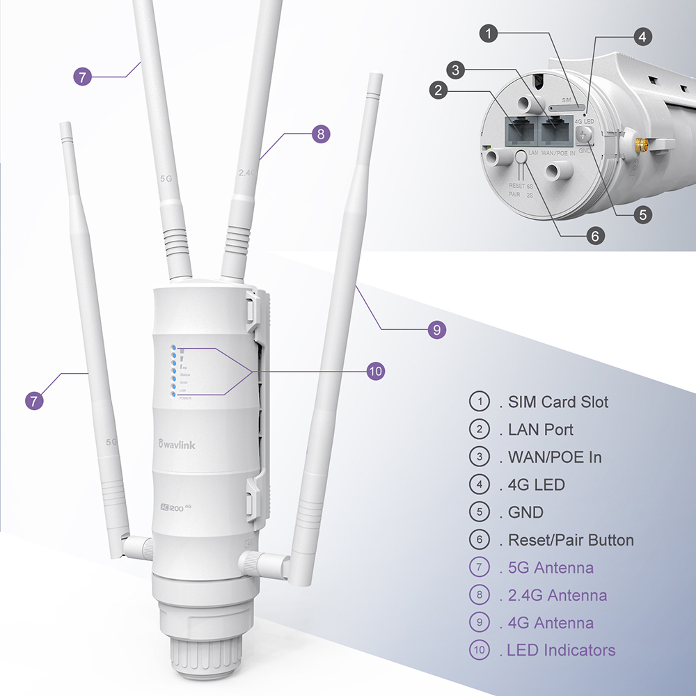 WAVLINK AC1200 Outdoor WiFi Dual Band Long Range Aerial HD4 Extender WiFi Router