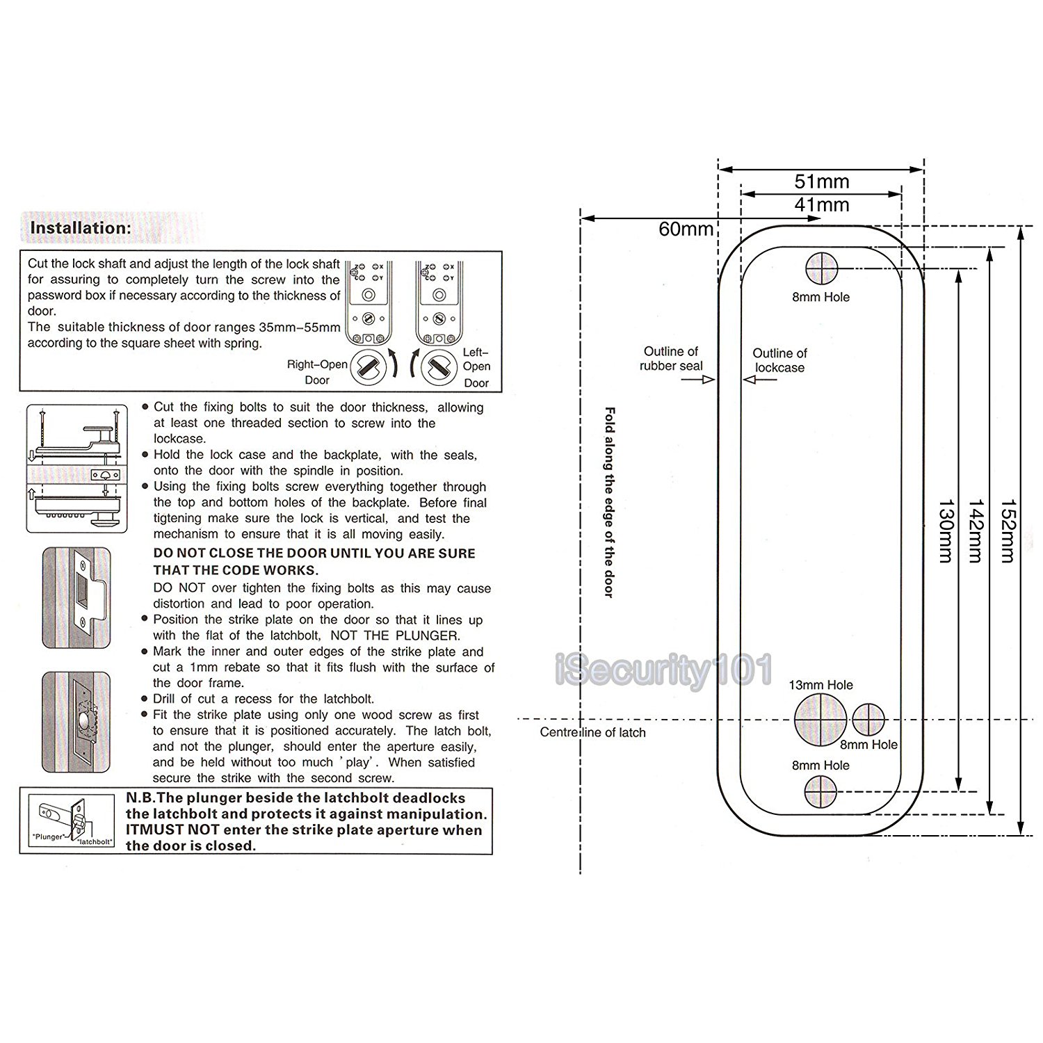Applicable for door with 35-60 mm thick door