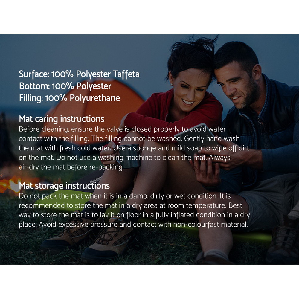 As the name says it all, the water-resistant Mat self-inflates through built-in valves in just 60 seconds, presenting you with a smooth sleeping surface amidst all types of terrain almost instantly. Made from high density 2.5cm thick polyurethane foam, the Mat have anti-slip polyester pongee bottom. That way, you lie on a smooth and comfortable surface with a mat that does not slip or move with your every turn while sleeping or shifting around.