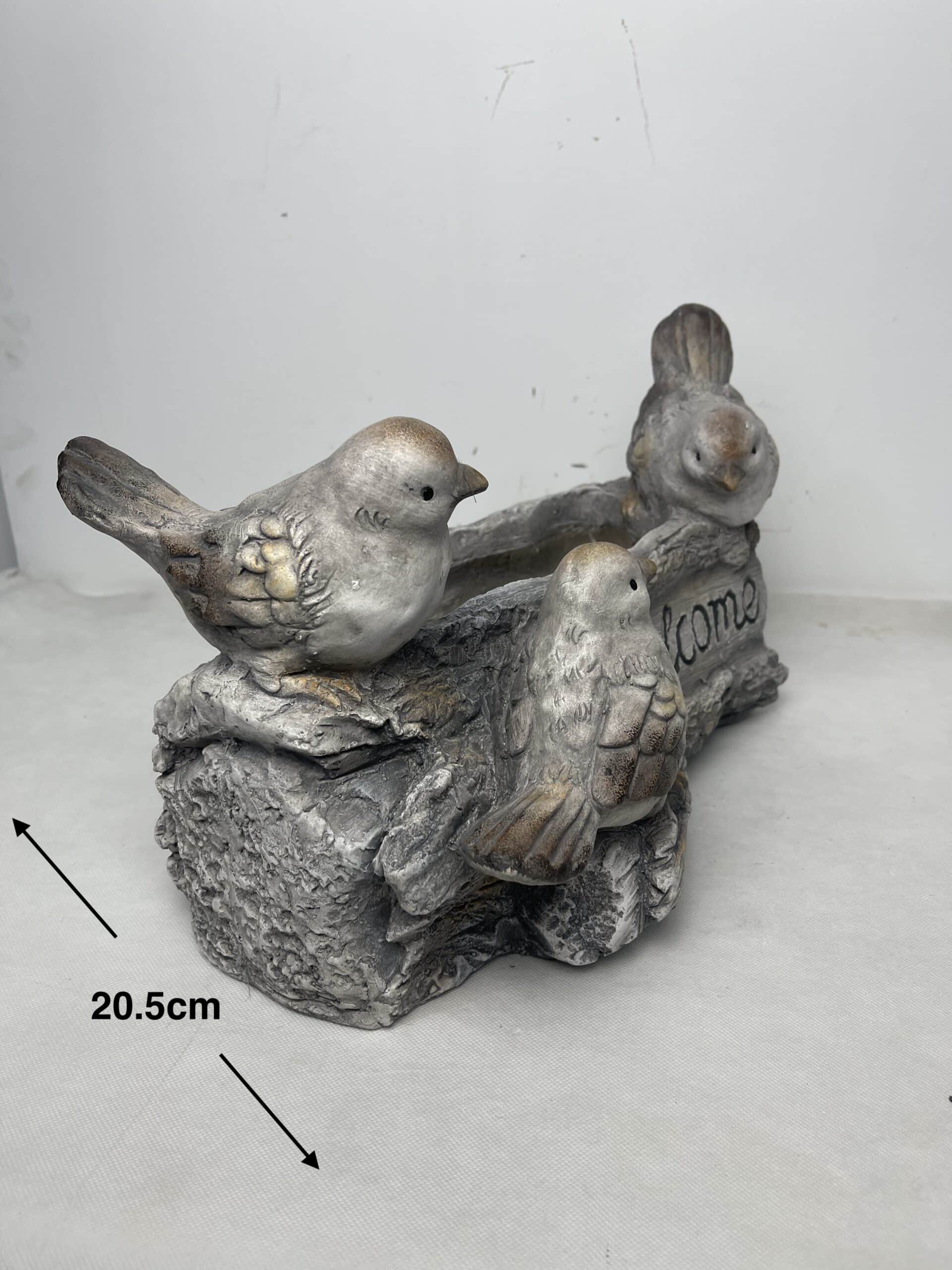 Welcome W 3 Birds Planter W Hole & Plug 38x23cm