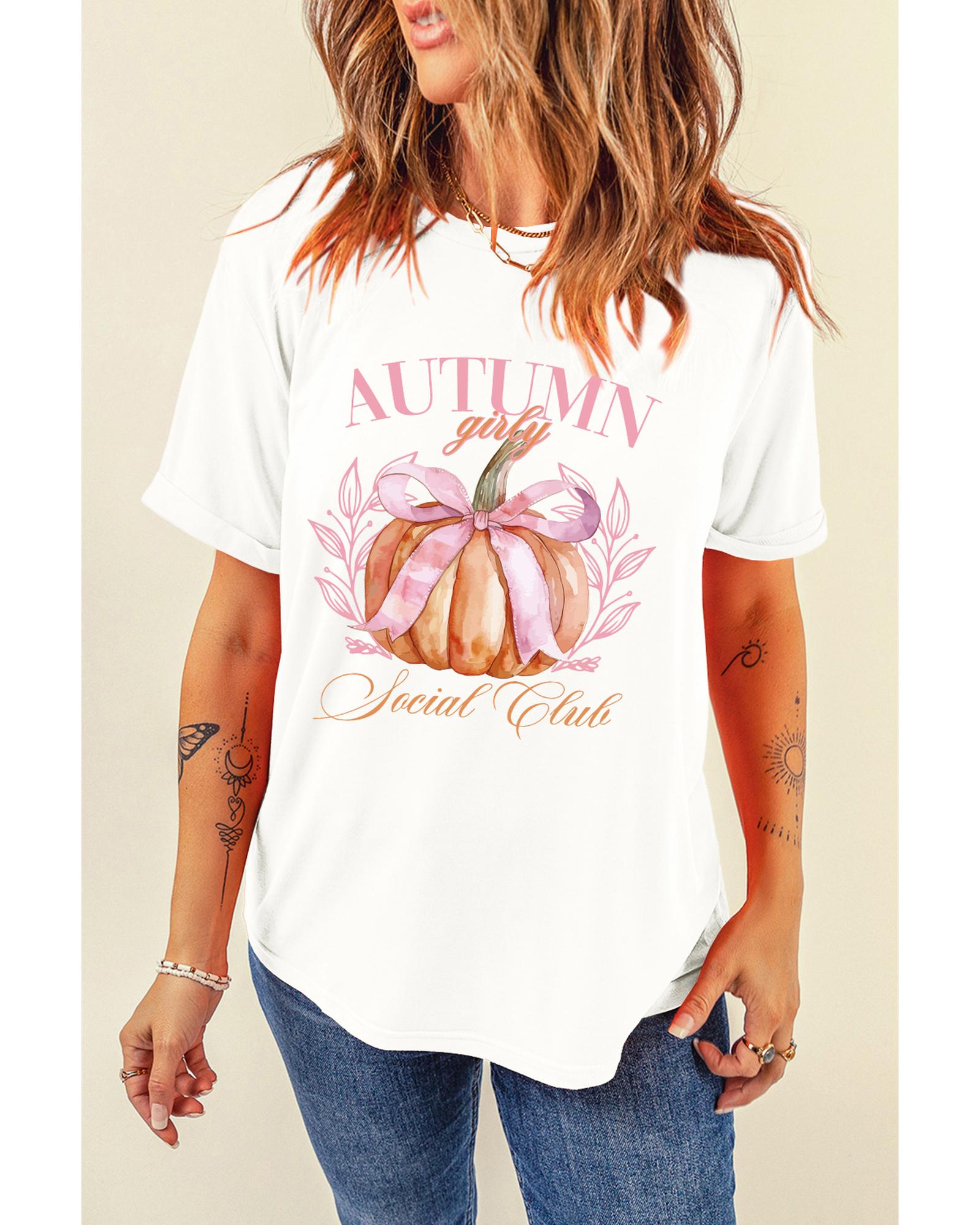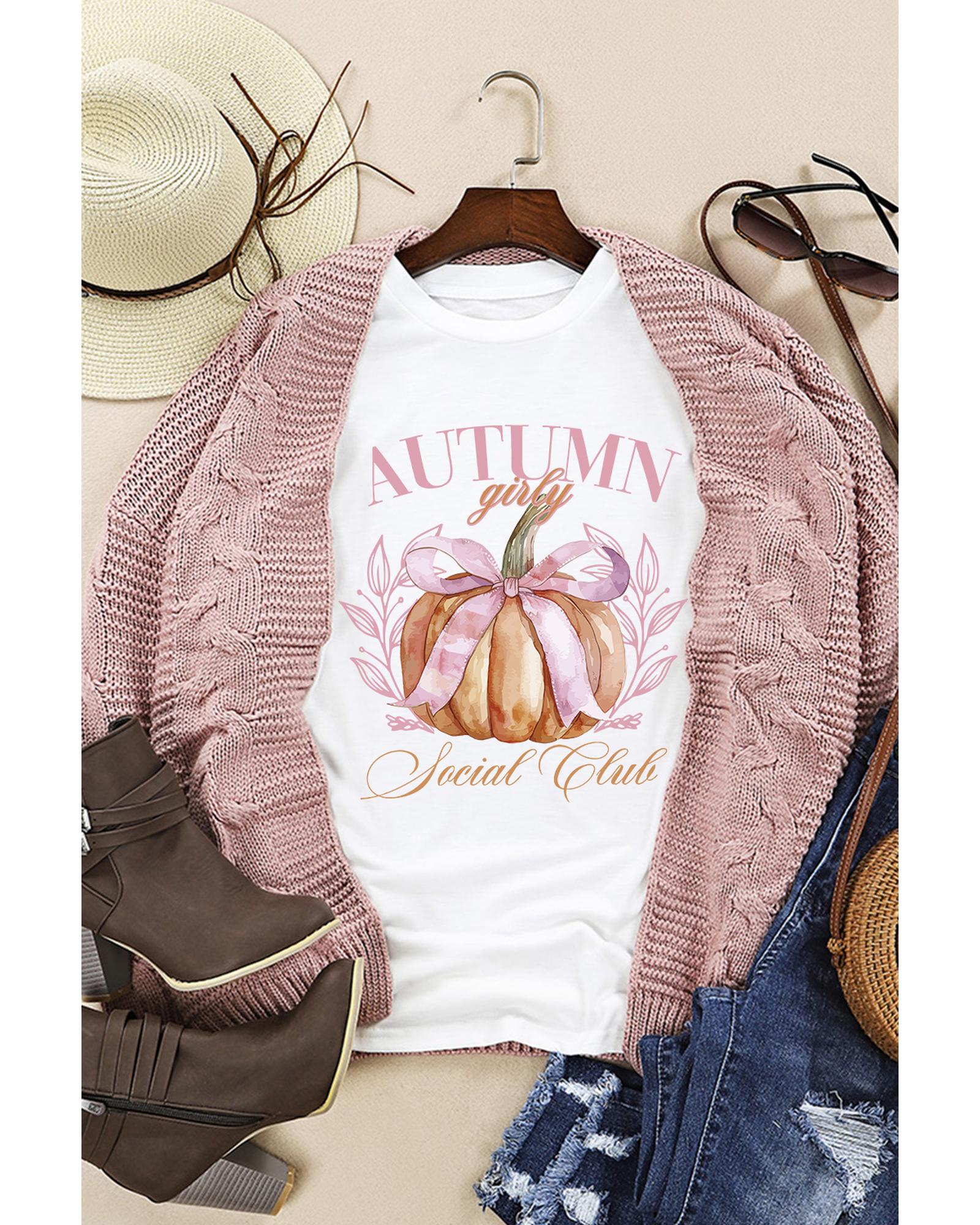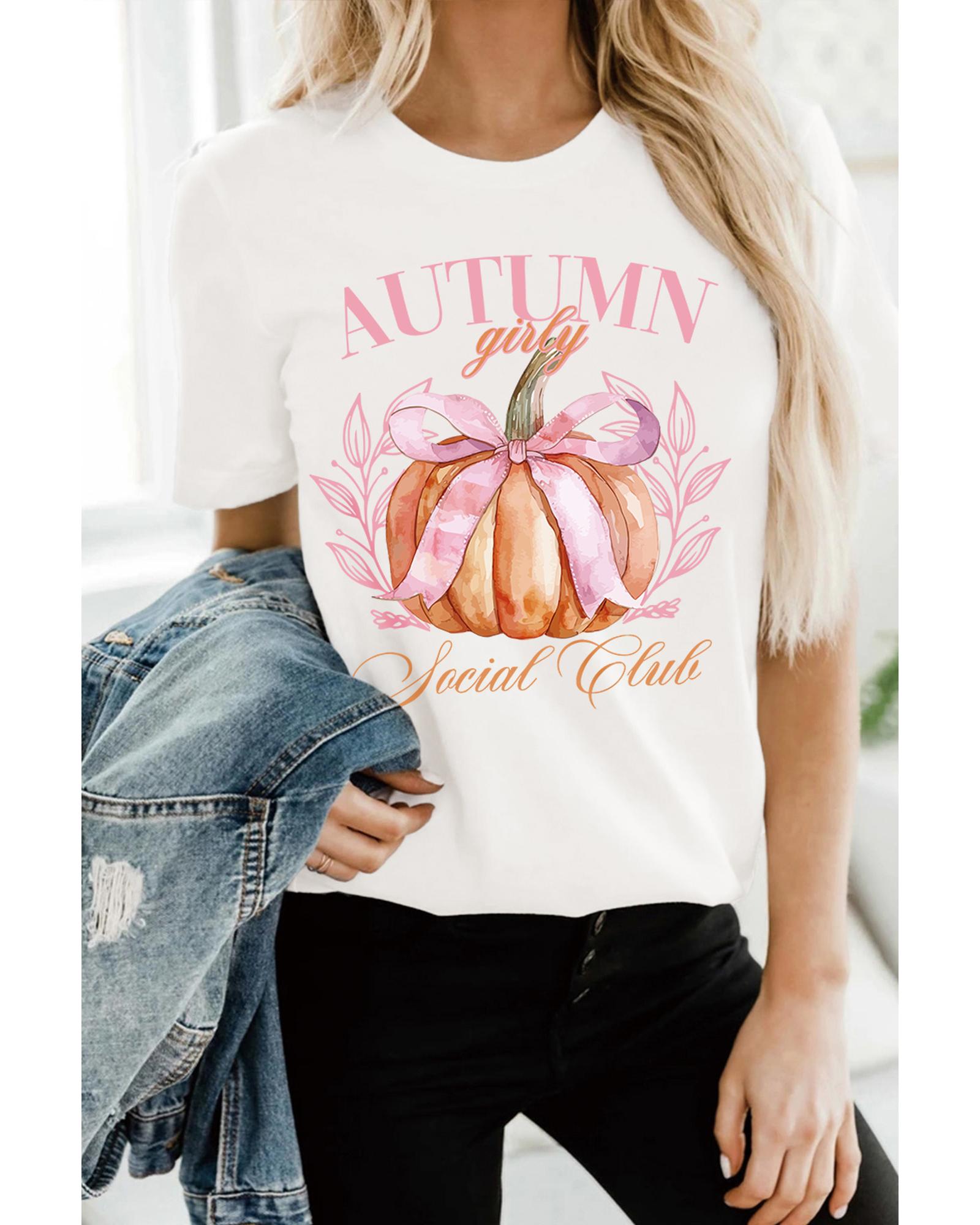 White Autumn Girly Thanksgiving Bowknot Pumpkin Graphic T Shirt – 2XL