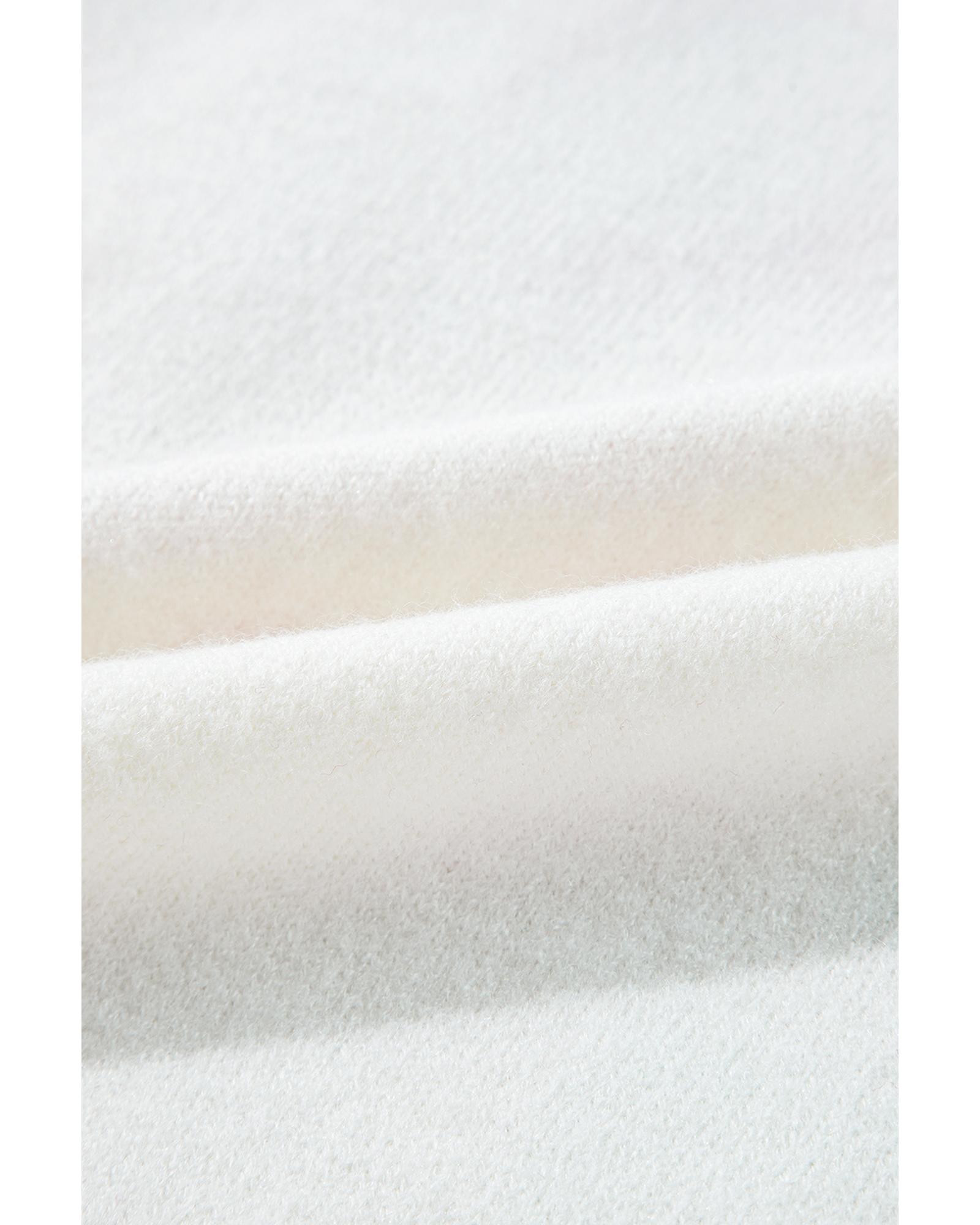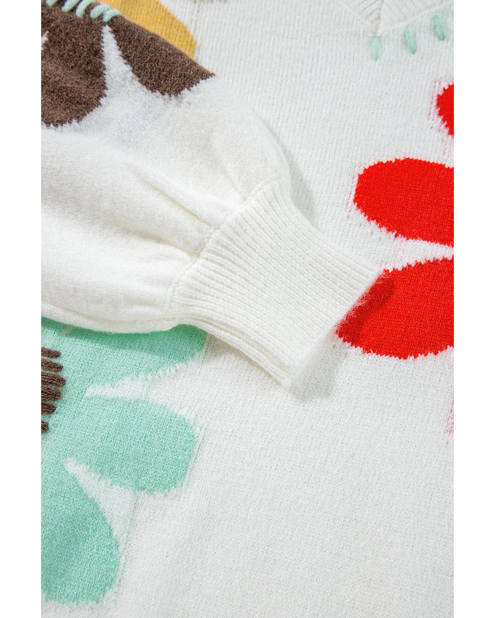 - White Big Flower Pattern V Neck Drop Shoulder Sweater