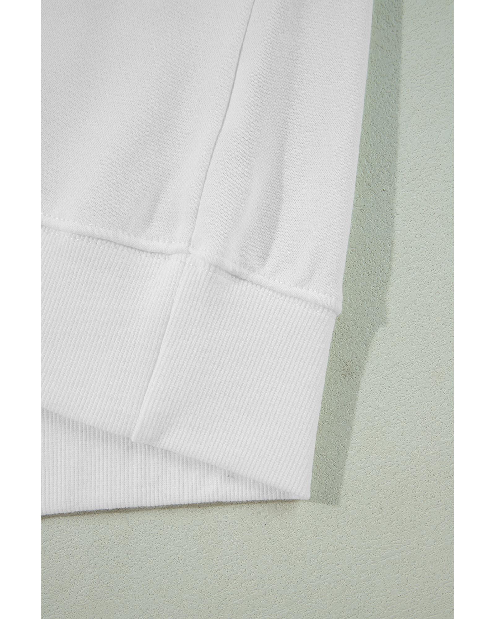 White Patchwork Side Pockets Oversized Henley Hoodie - L