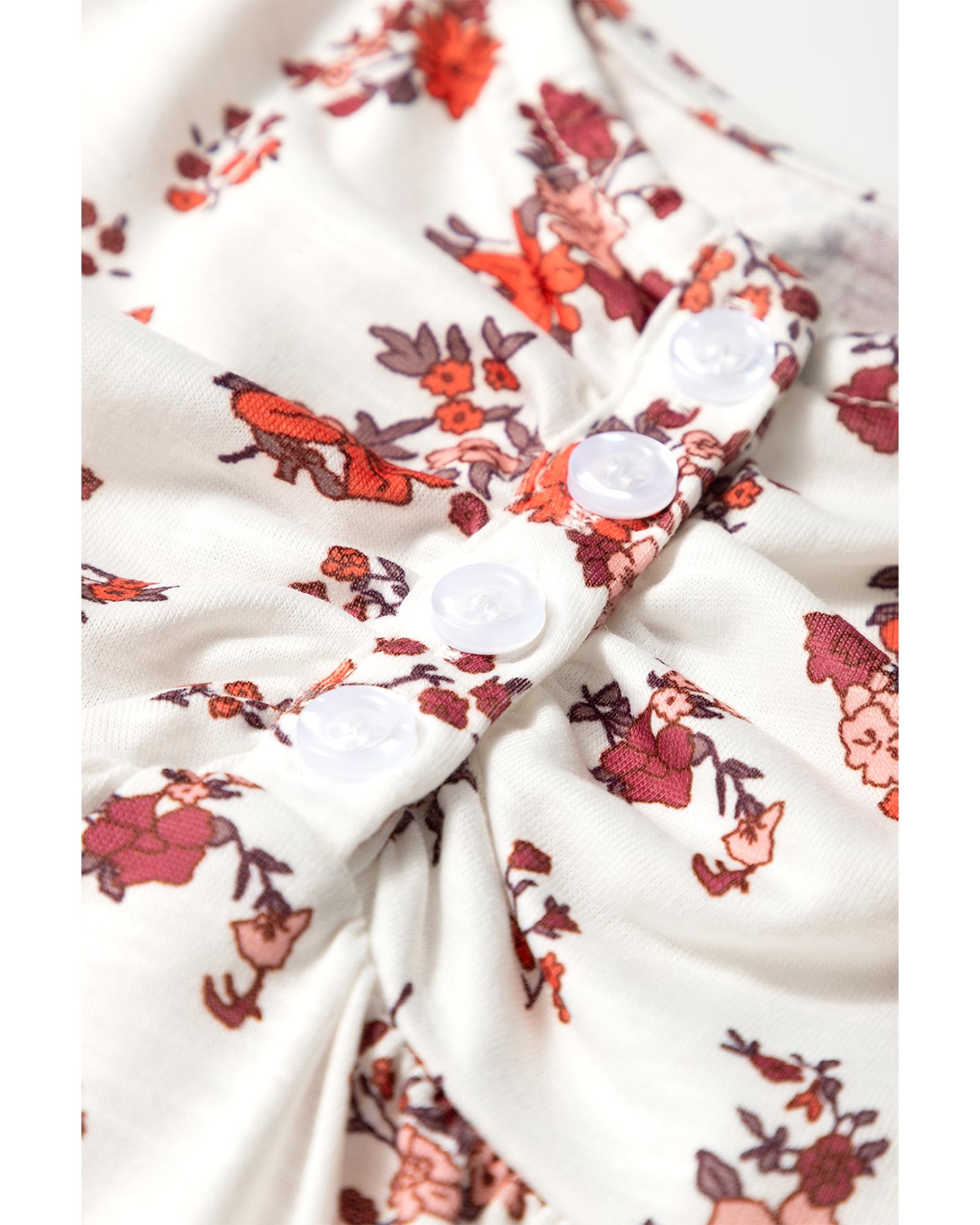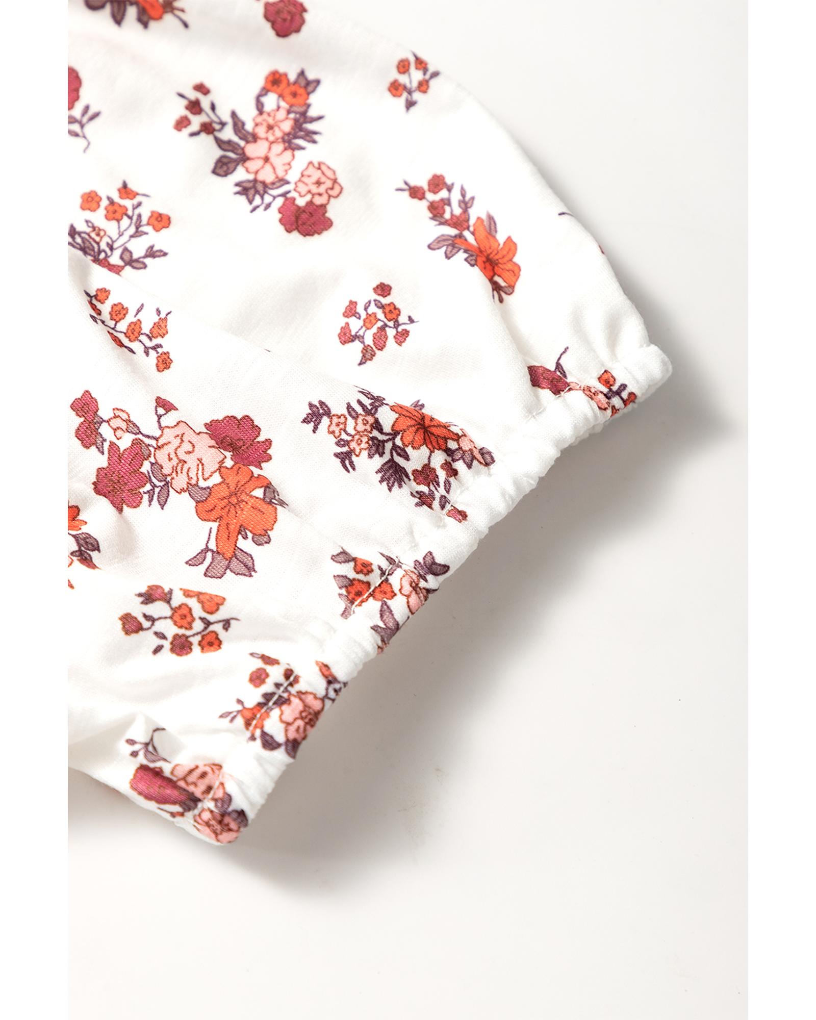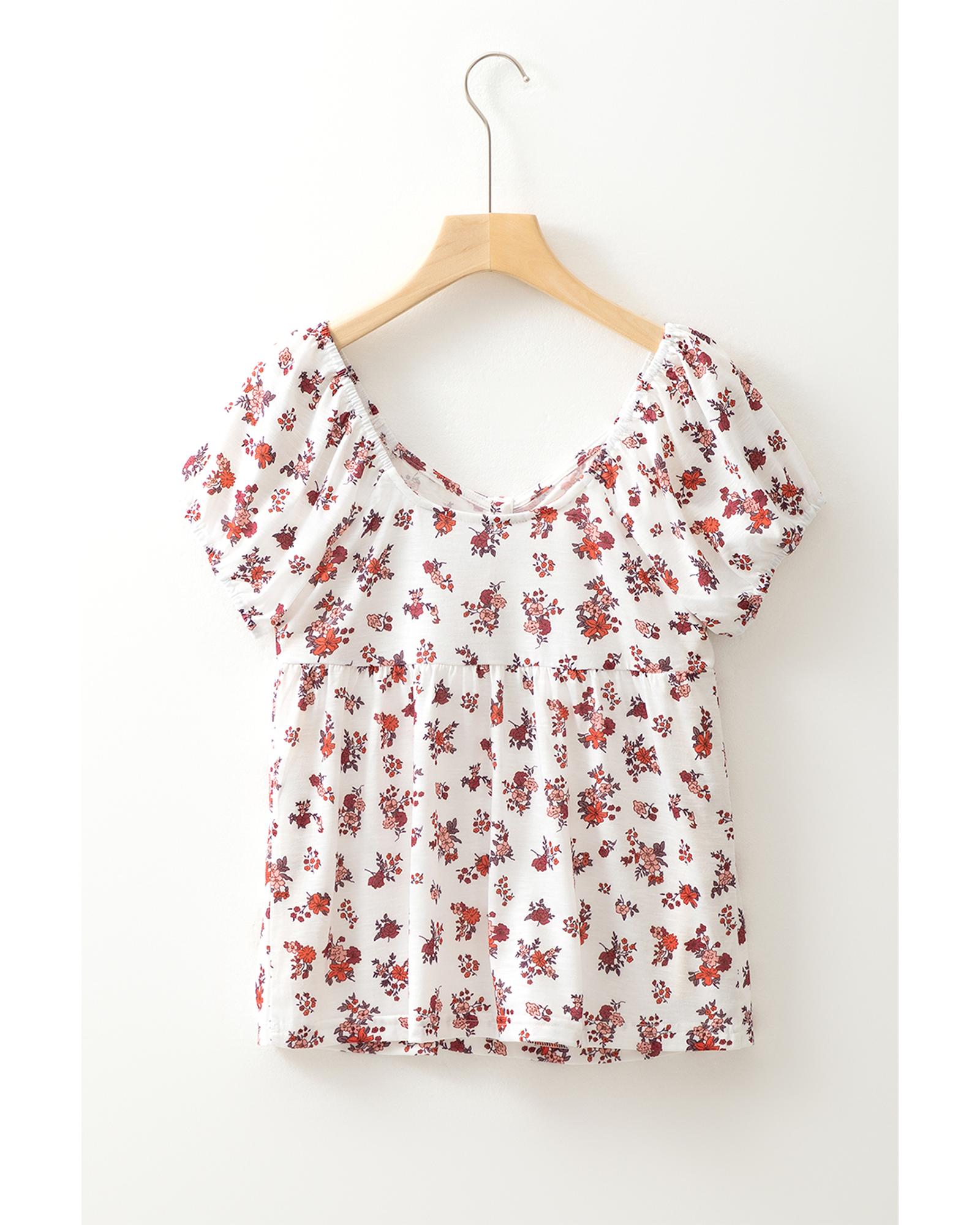 White Boho Floral Ruched Cinched Short Sleeve Blouse – XL