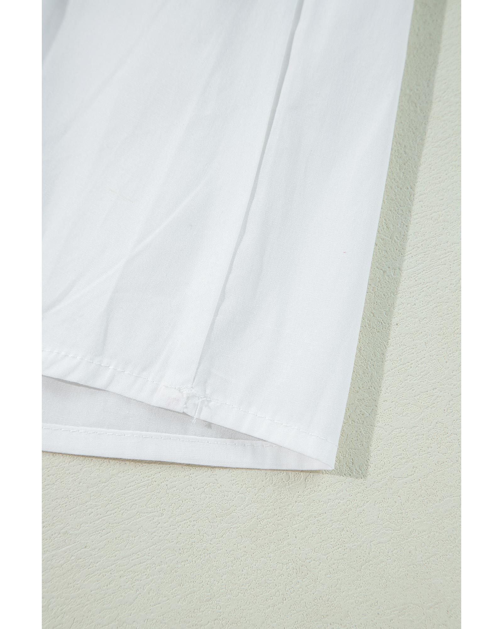 White Bow Knot Cutout Back Loose Fit 3/4 Sleeve Blouse – M