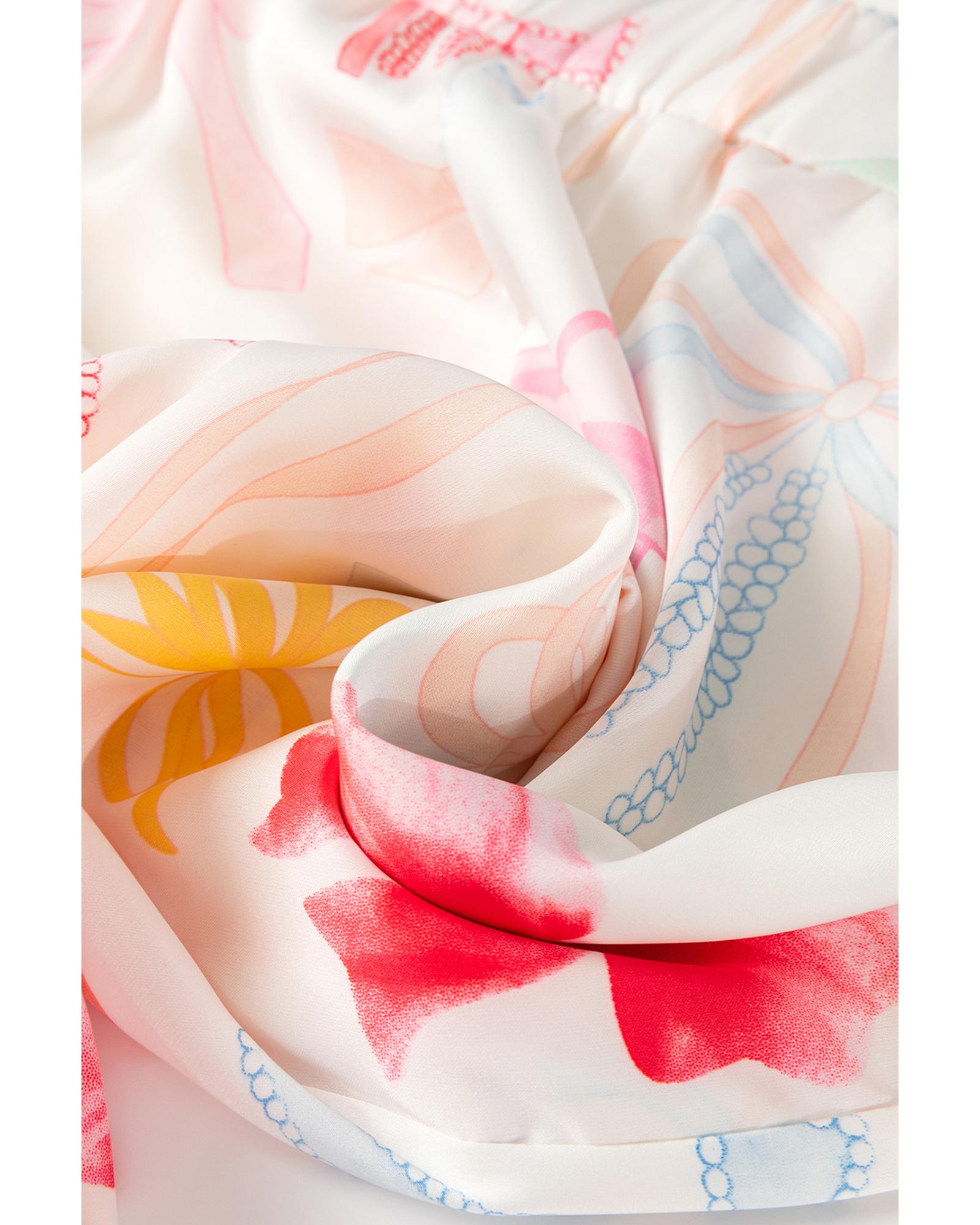 White Bow Knot Print Lapel Collar Wide Leg Satin Pajama Set – L