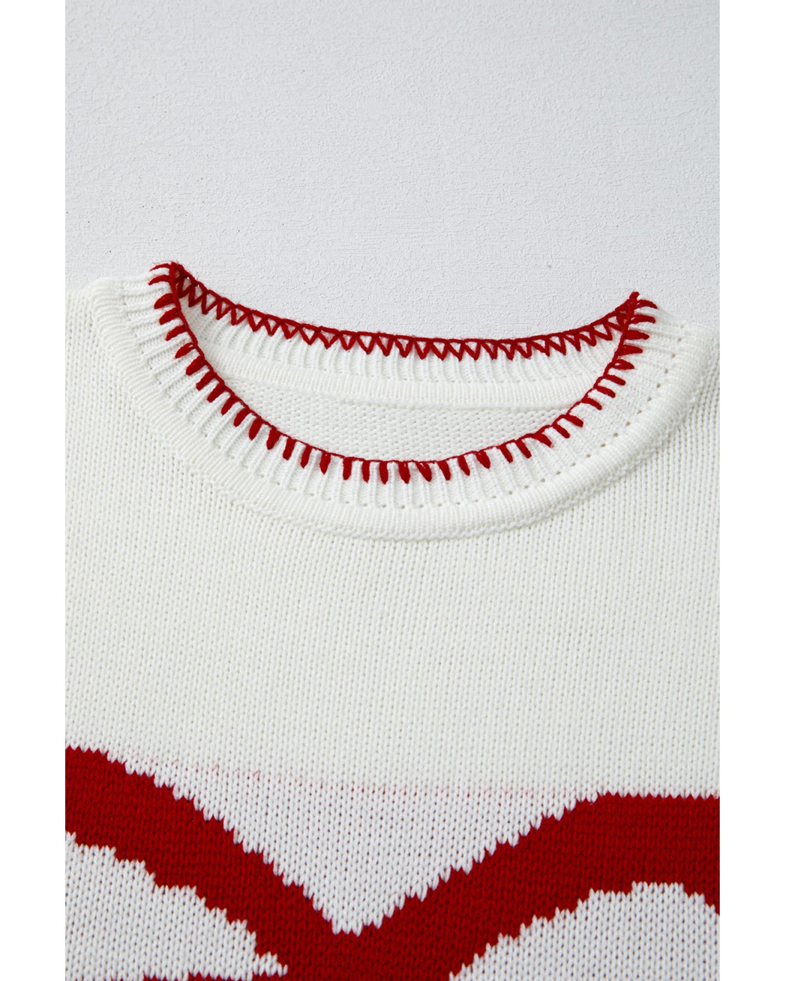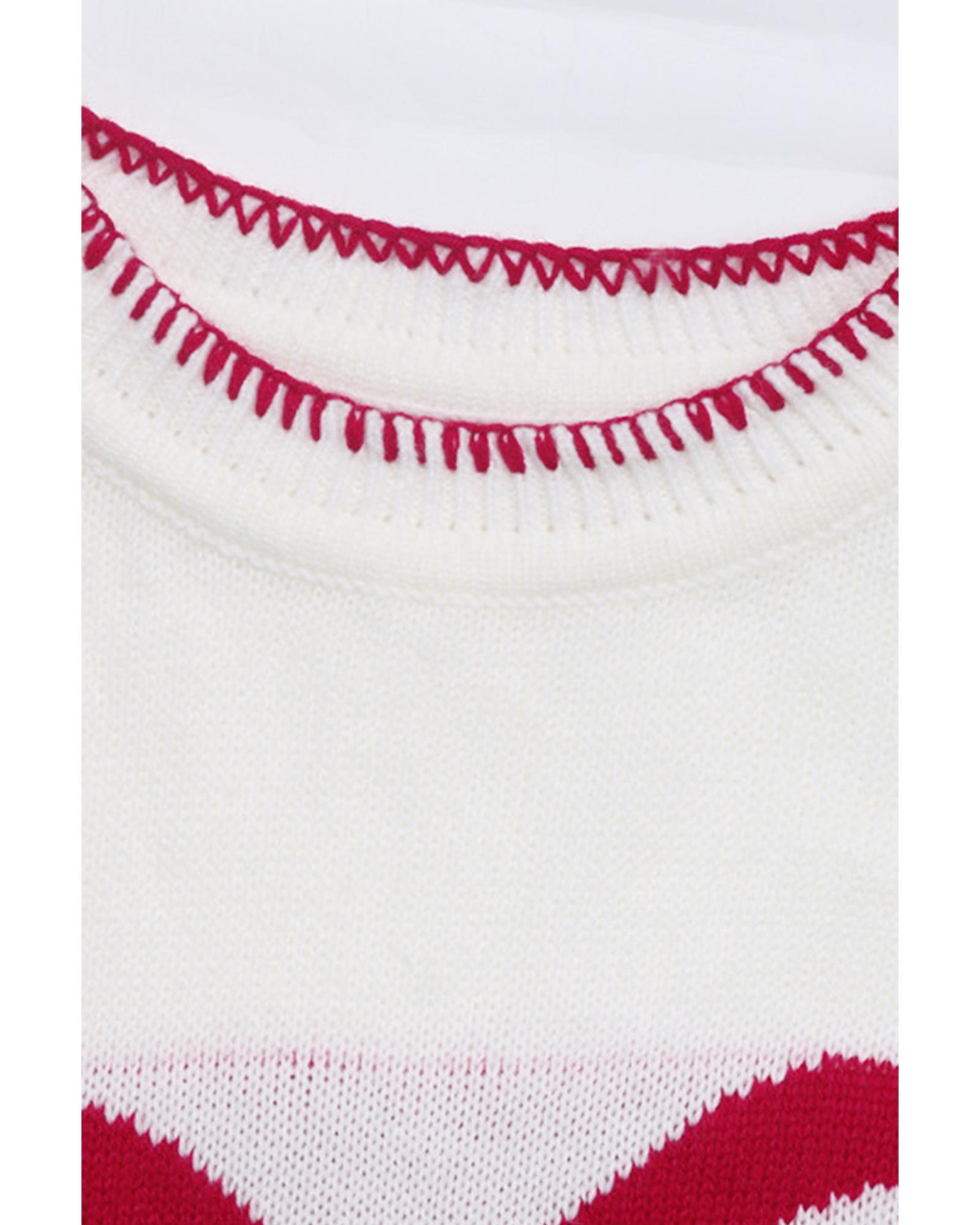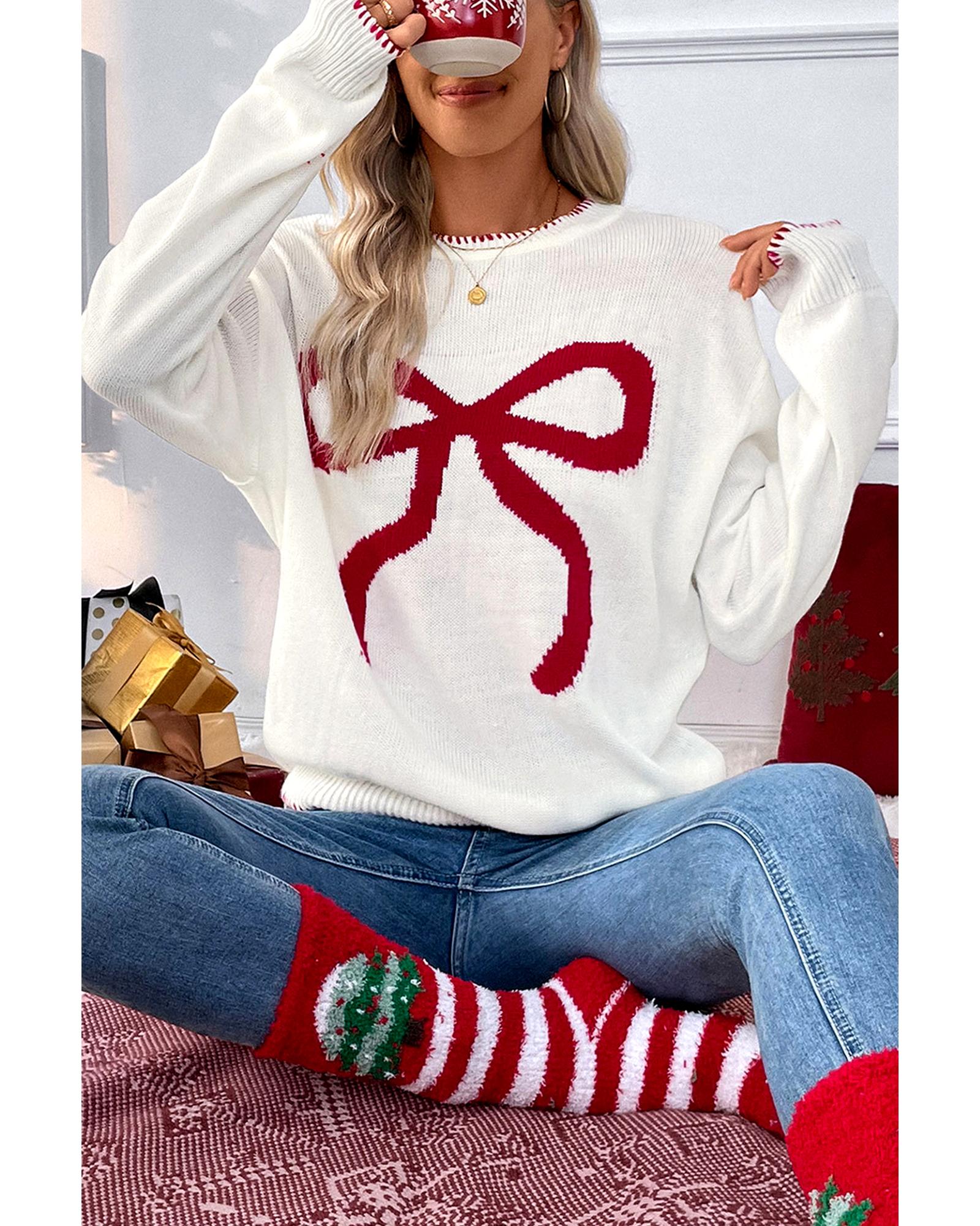 White Bow Pattern Contrast Trim Christmas Loose Graphic Sweater – S