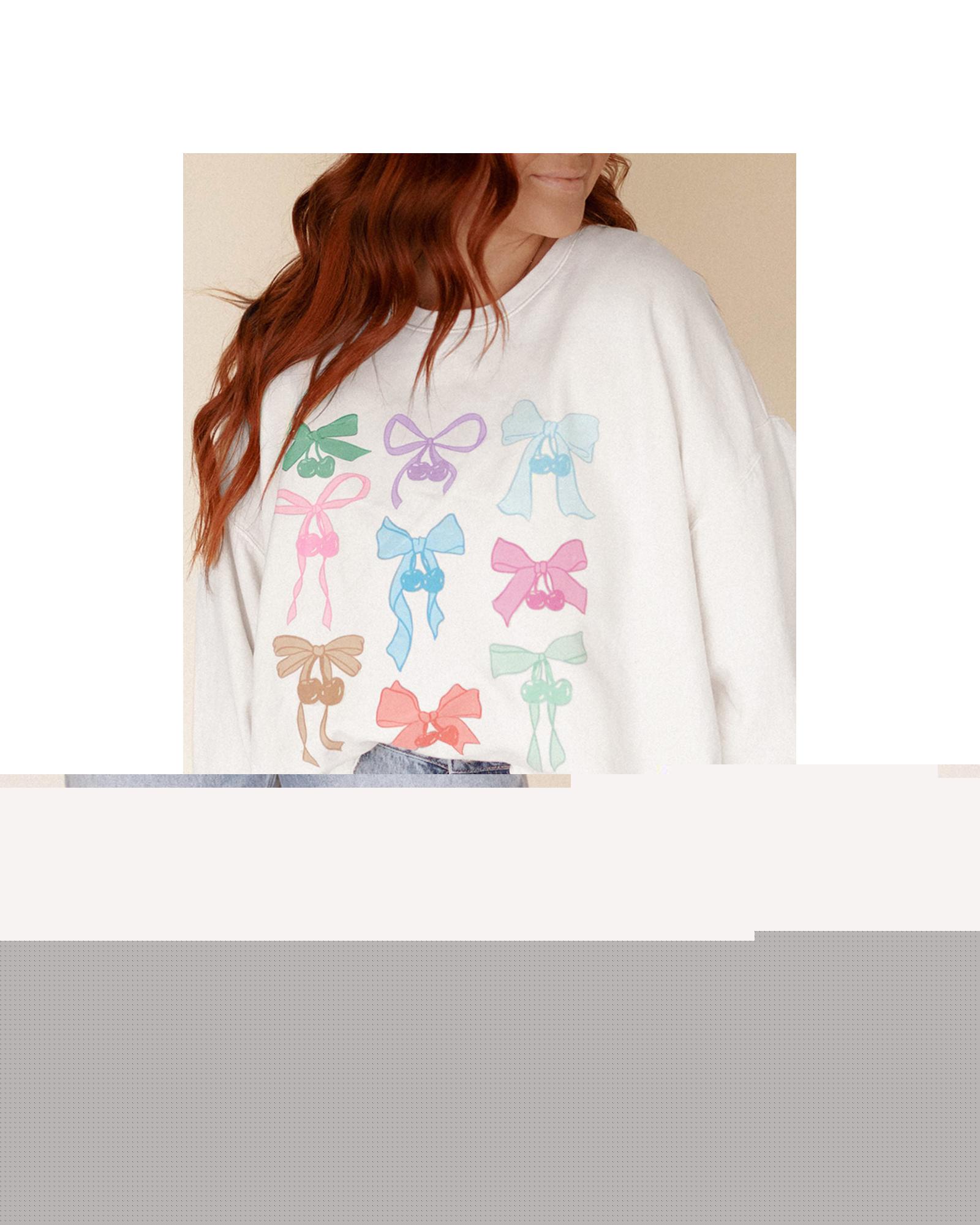 White Bowknot Pattern Drop Shoulder Loose Sweatshirt – S