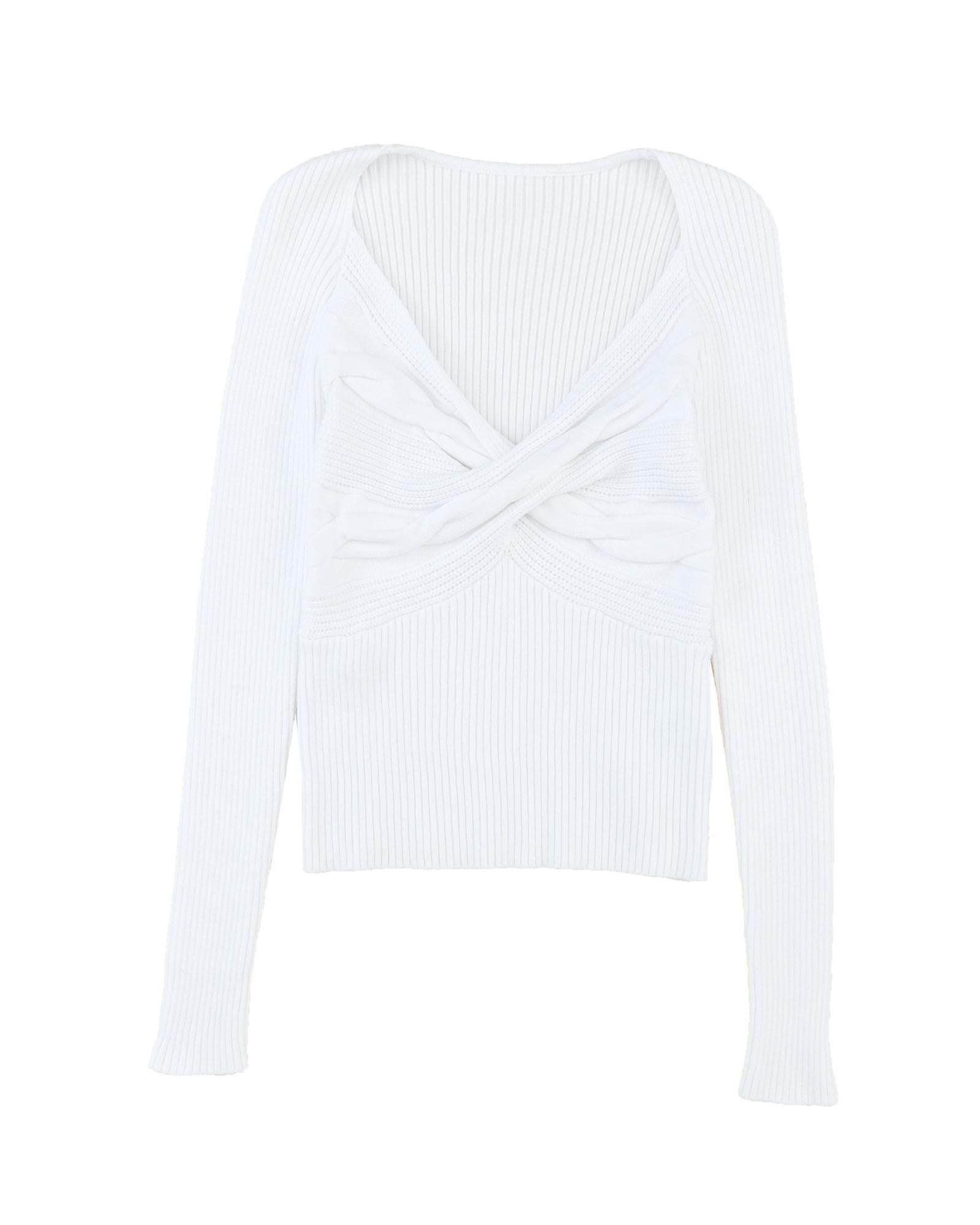 - White Cable Crossed V Neck Sweater