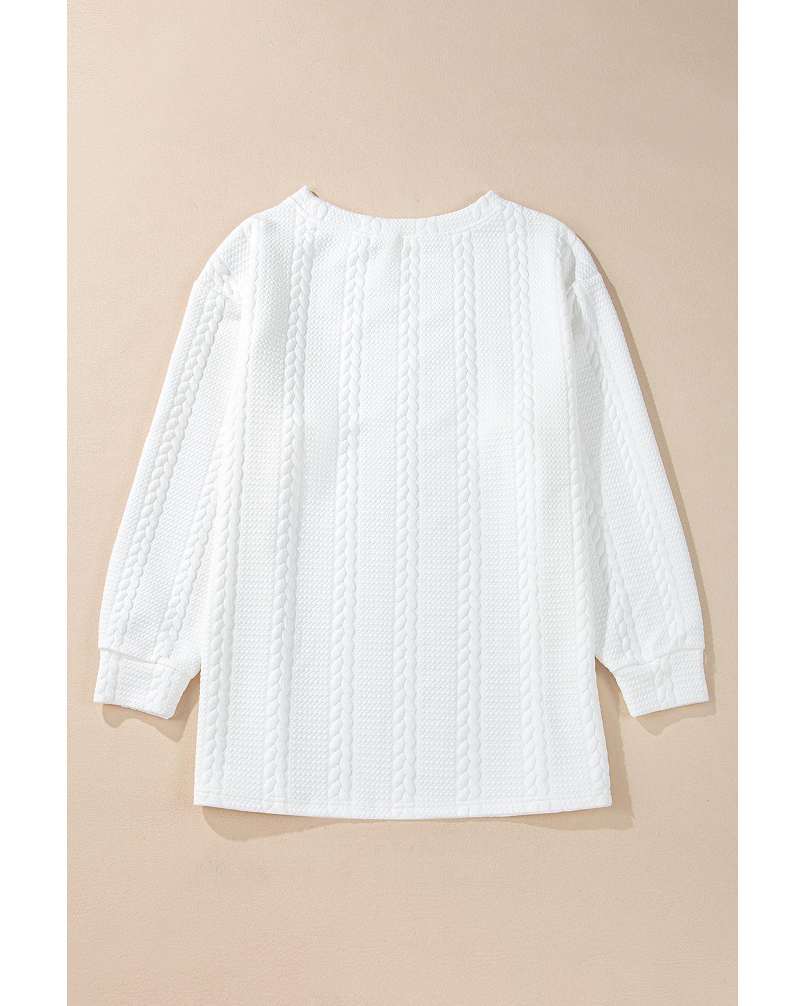 White Cable Textured Loose Plus Size Sweatshirt – 1X