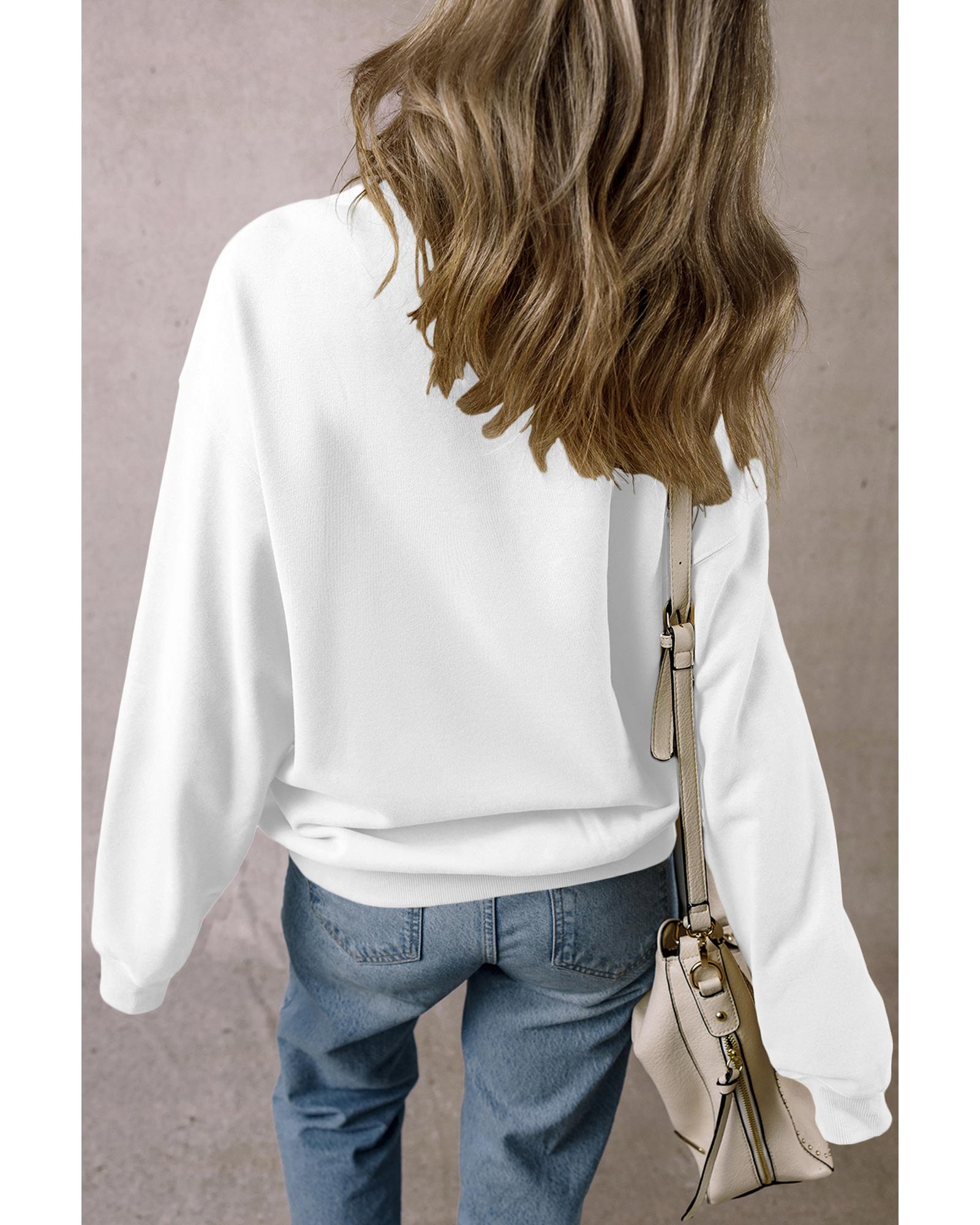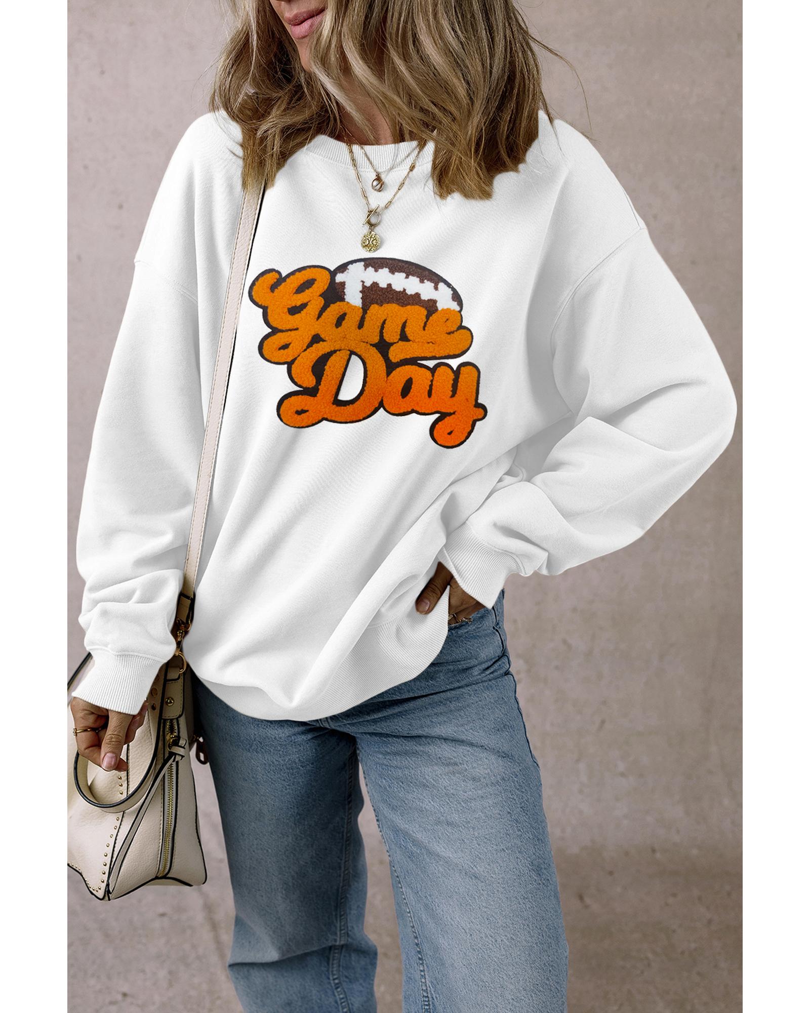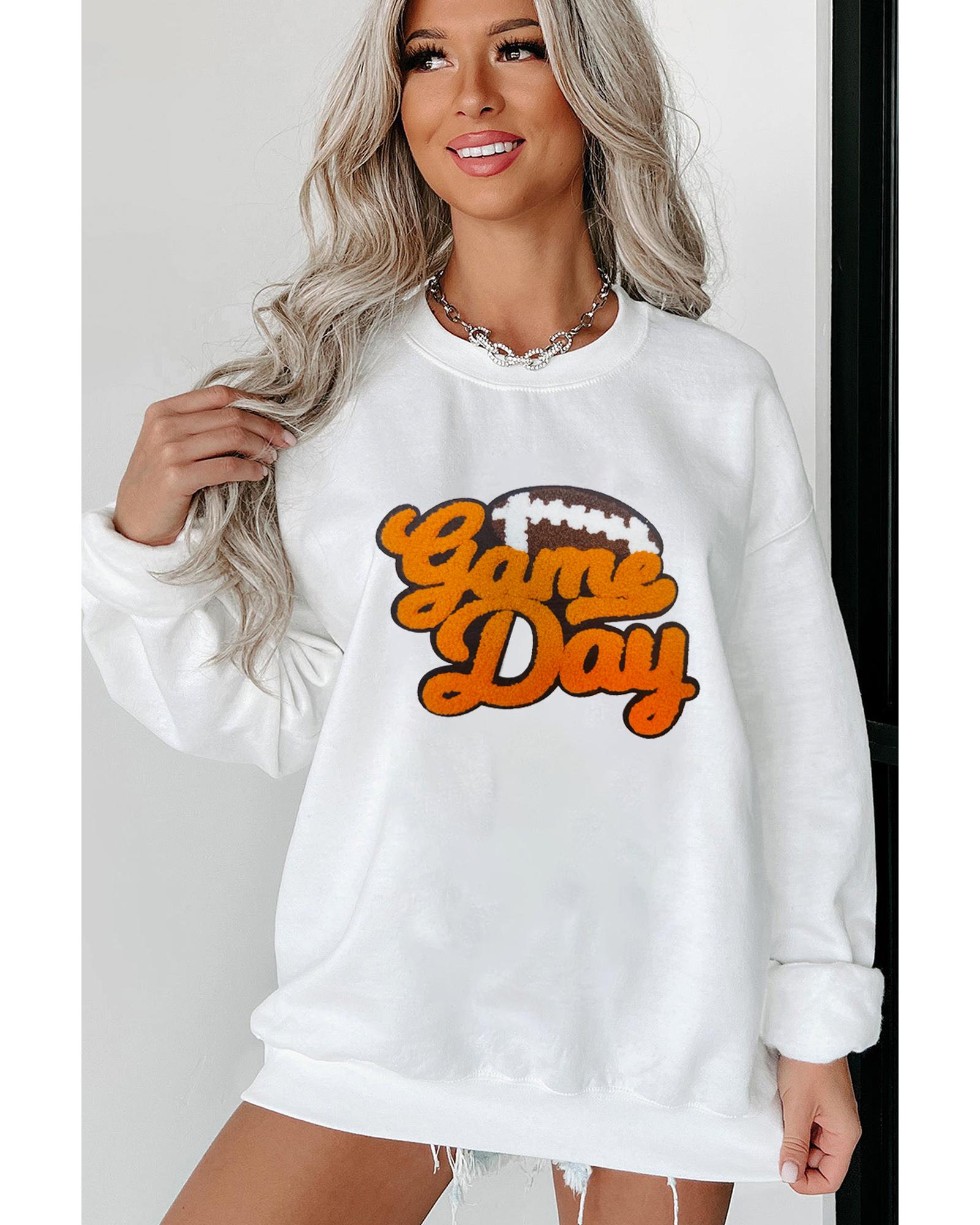 White Chenille Game Day Rugby Football Pattern Pullover Sweatshirt – L