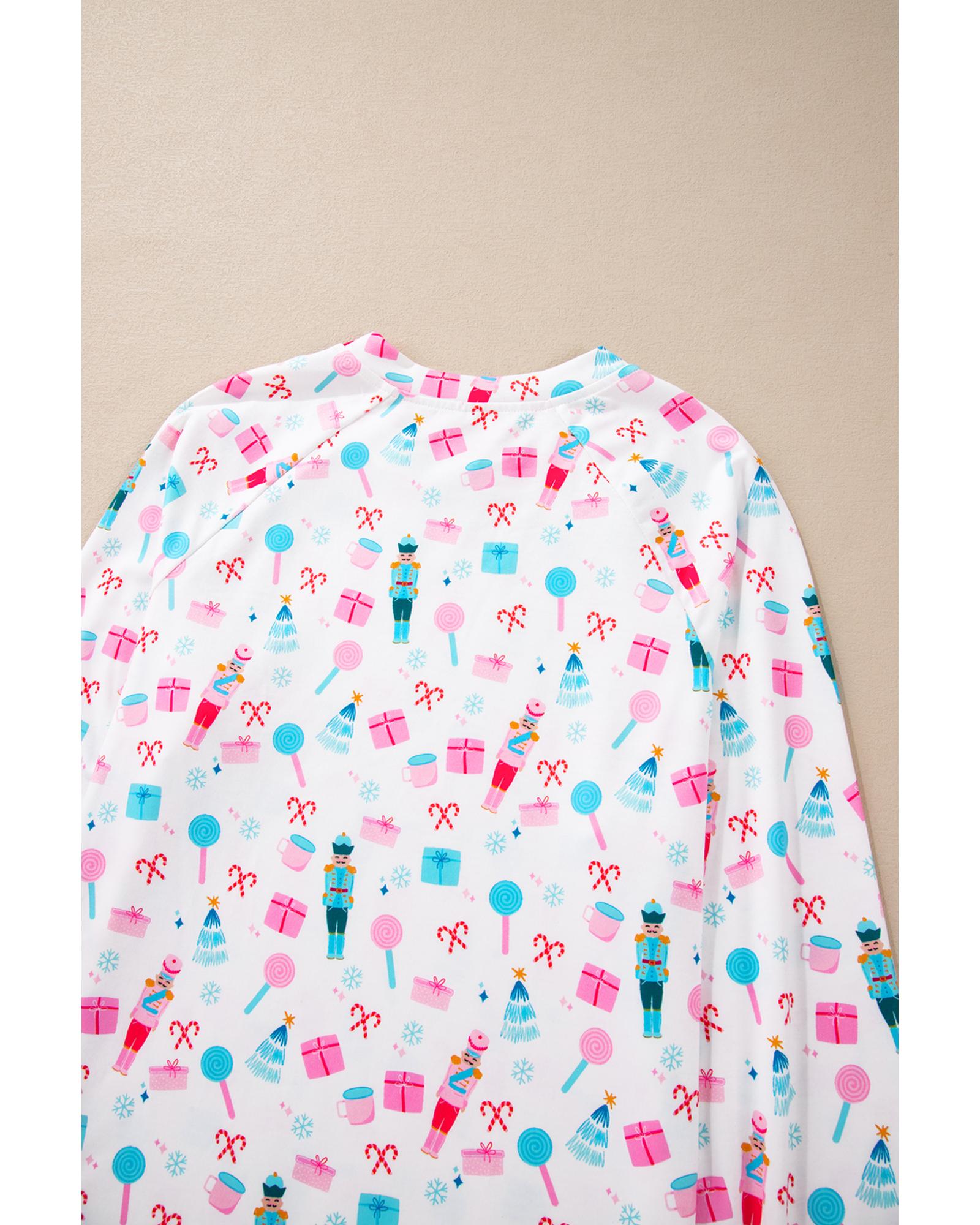 White Christmas Pattern Long Sleeve Top and Wide Leg Pants Set – L