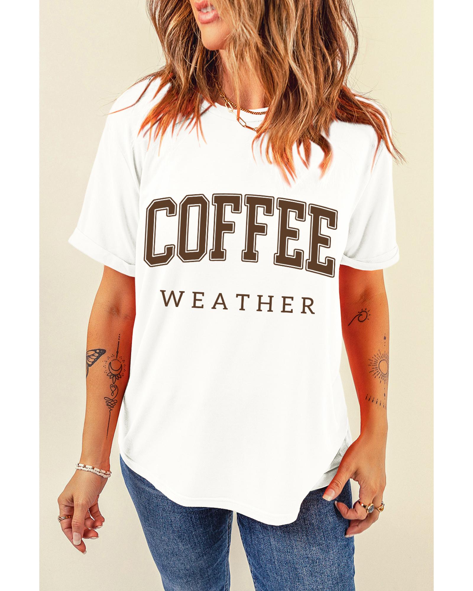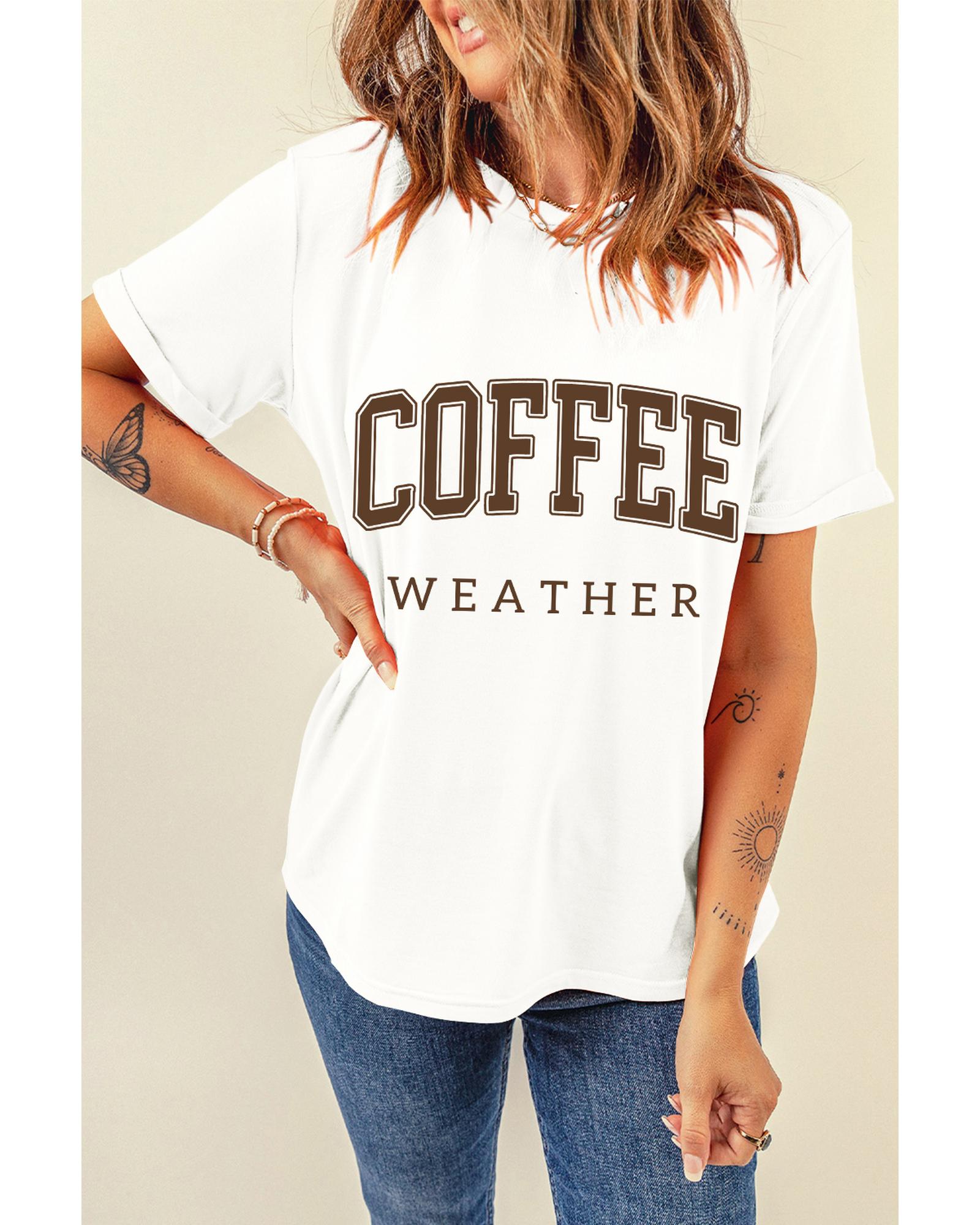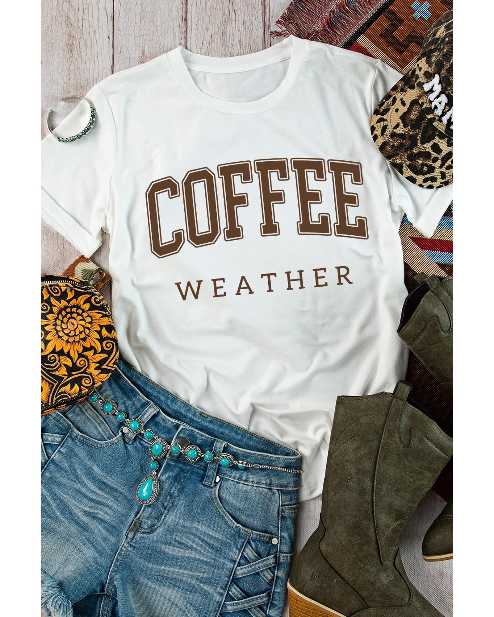 White COFFEE WEATHER Round Neck Graphic T Shirt – 3XL