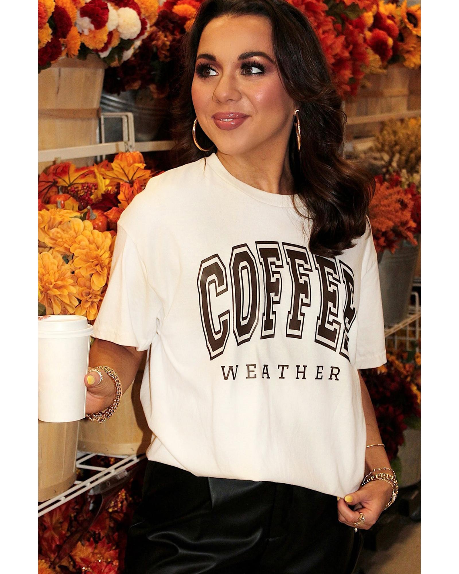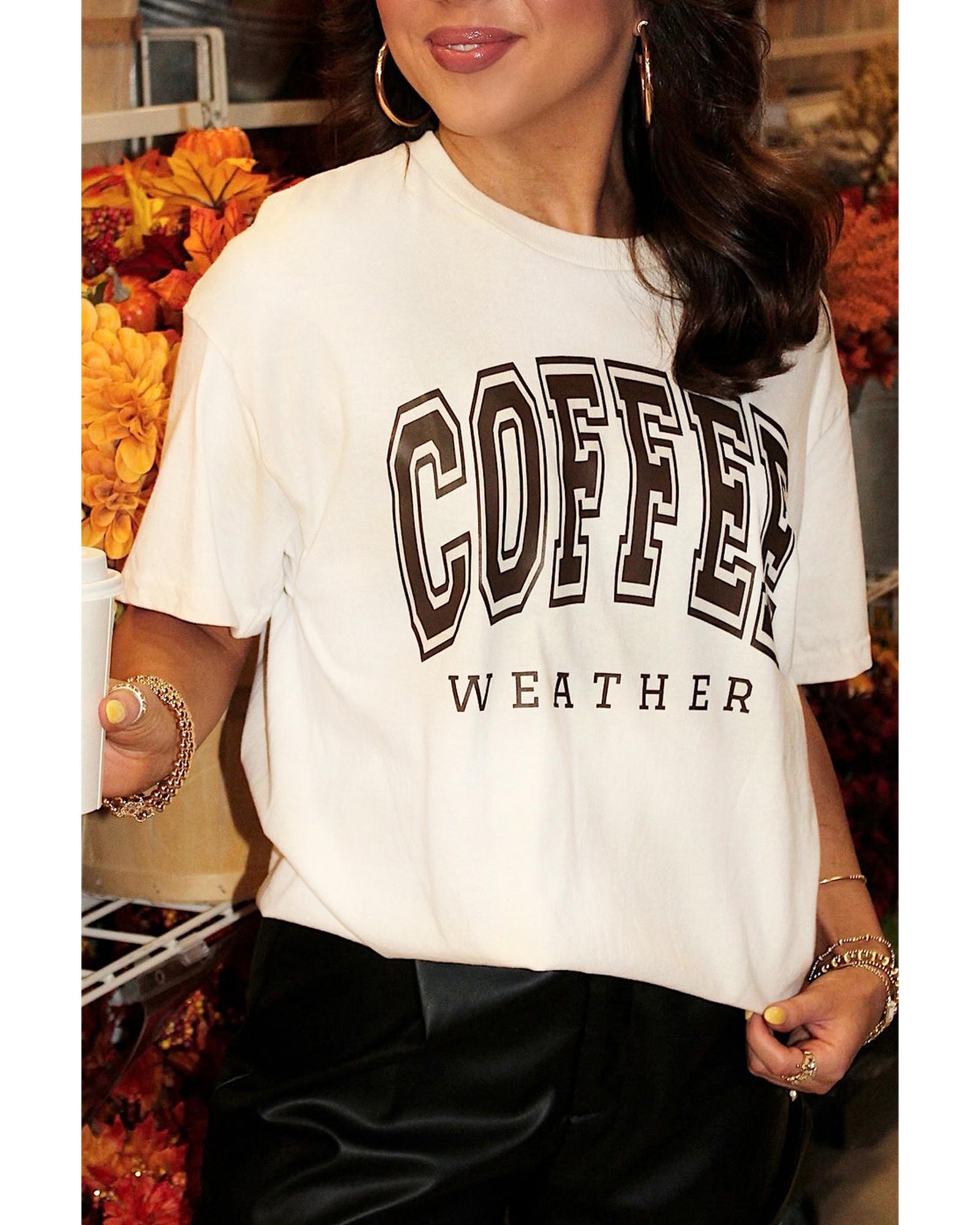 White COFFEE WEATHER Round Neck Graphic T Shirt – M