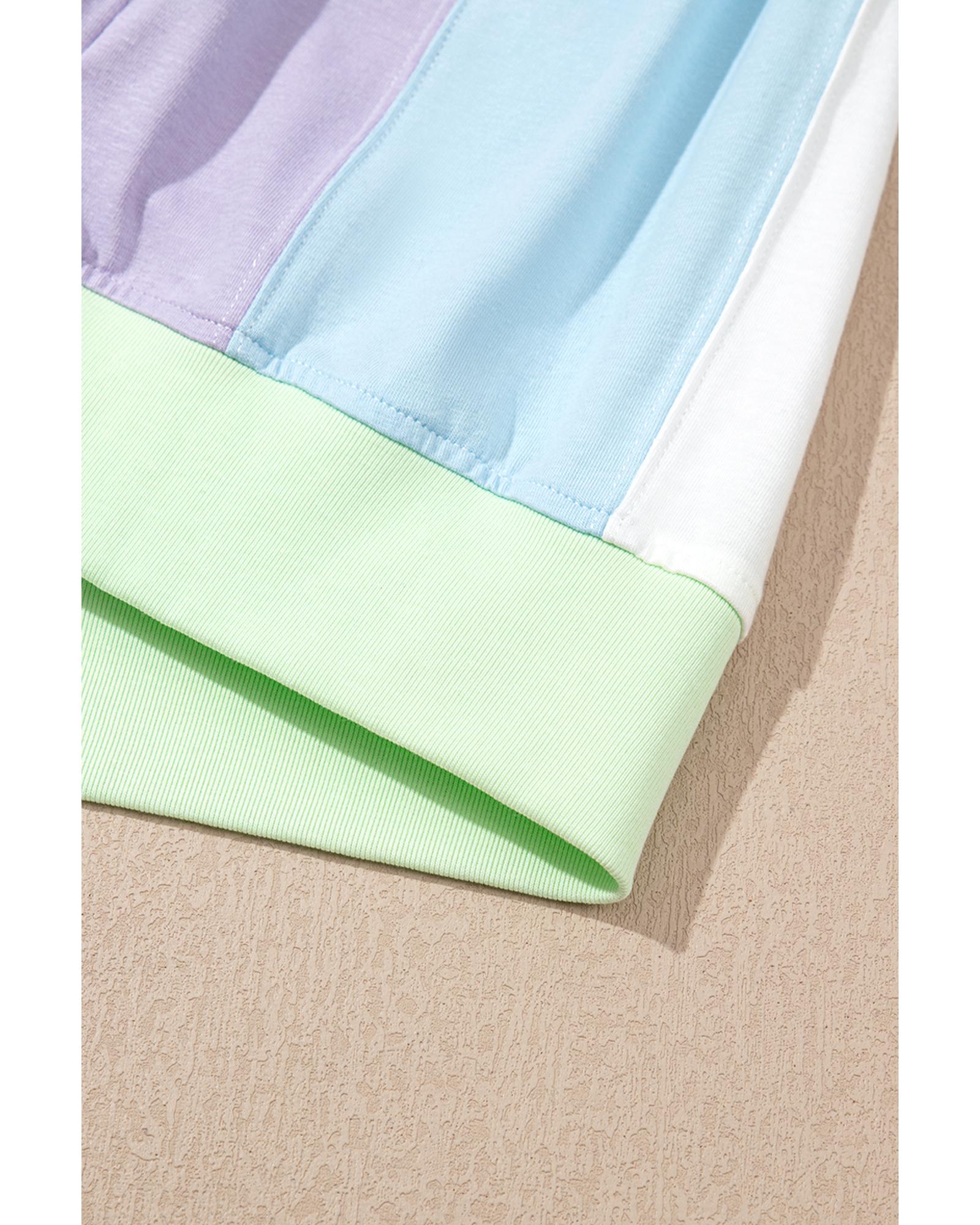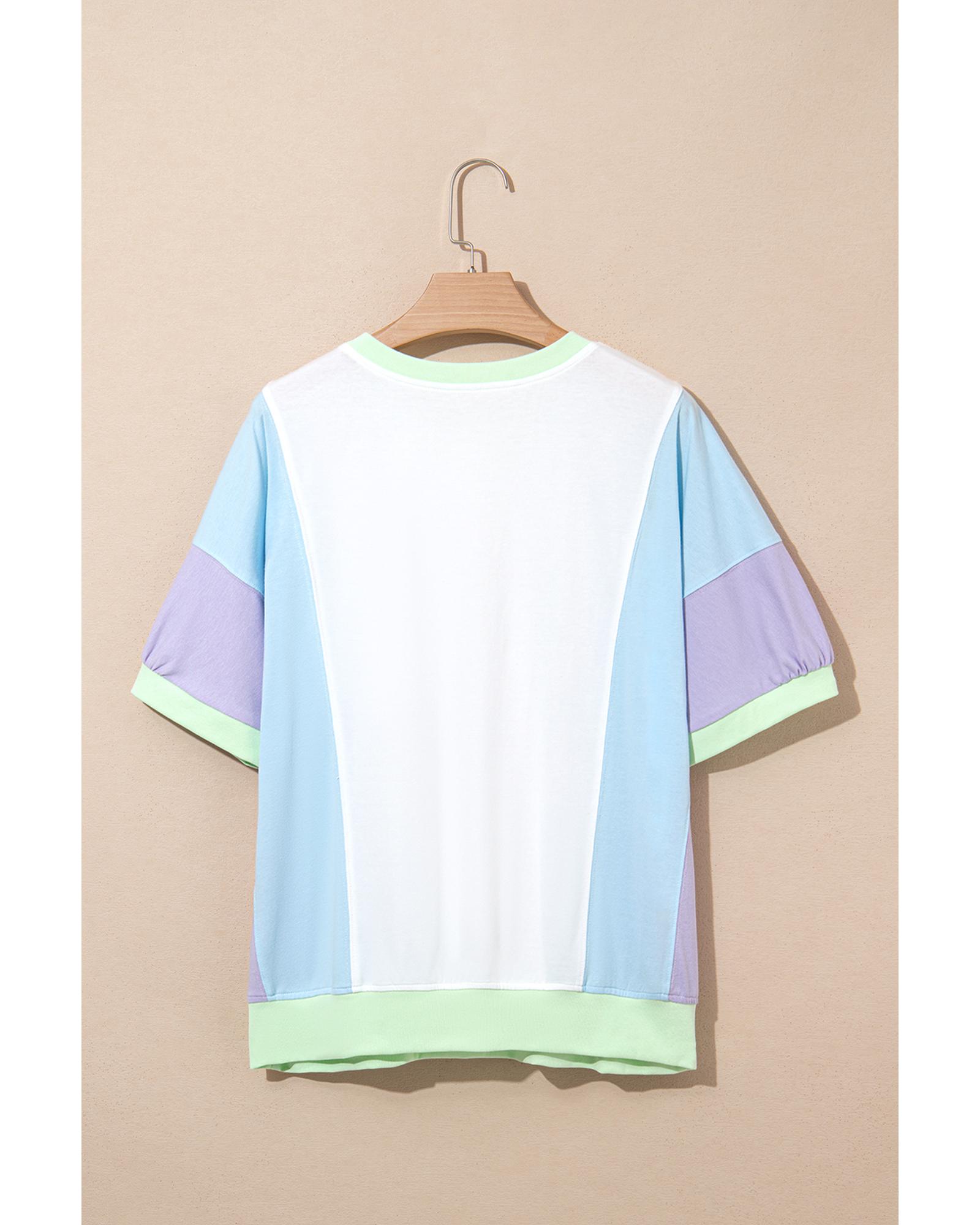 White Color Block Patchwork Half Sleeve Oversized T Shirt – S
