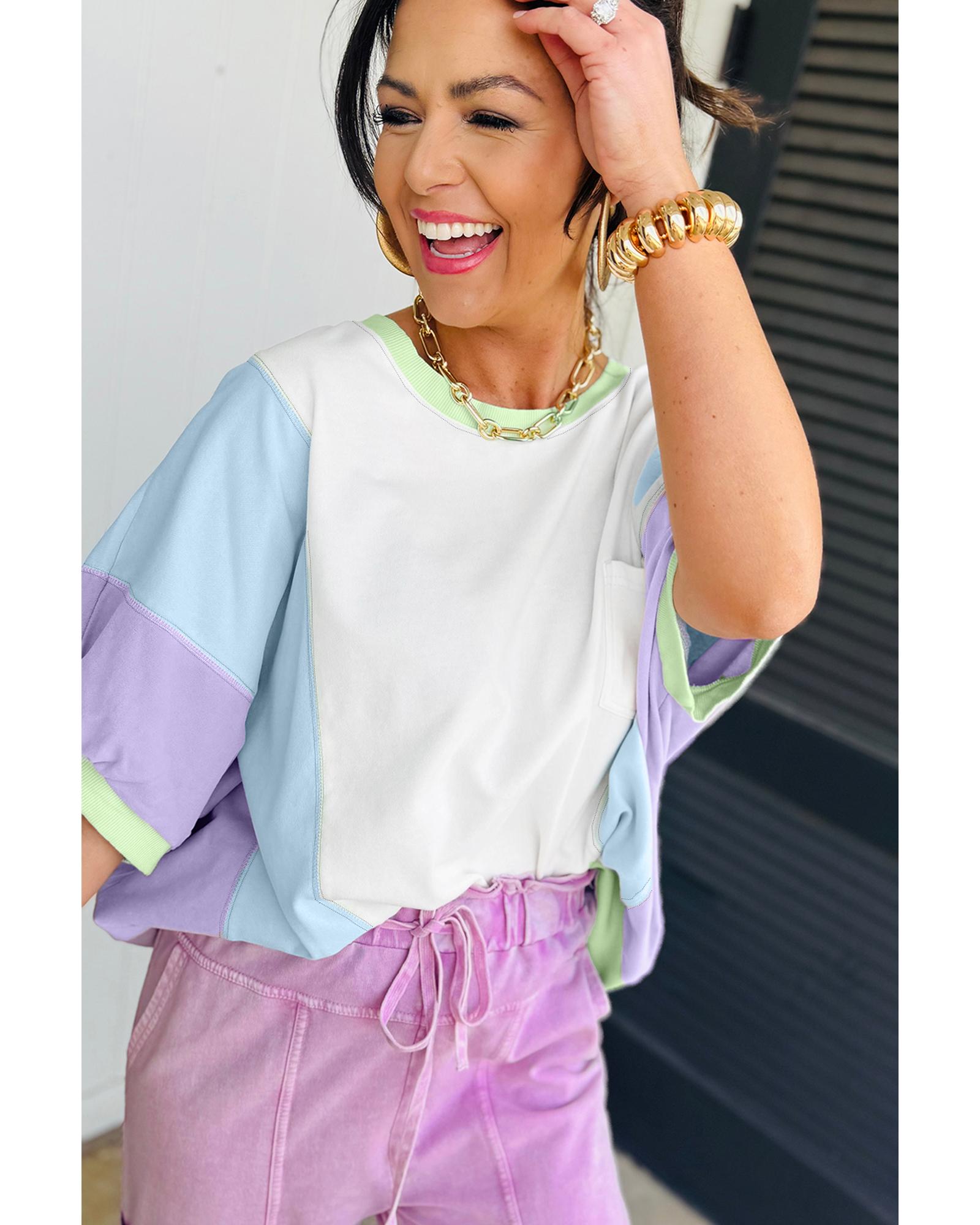 White Color Block Patchwork Half Sleeve Oversized T Shirt – XL