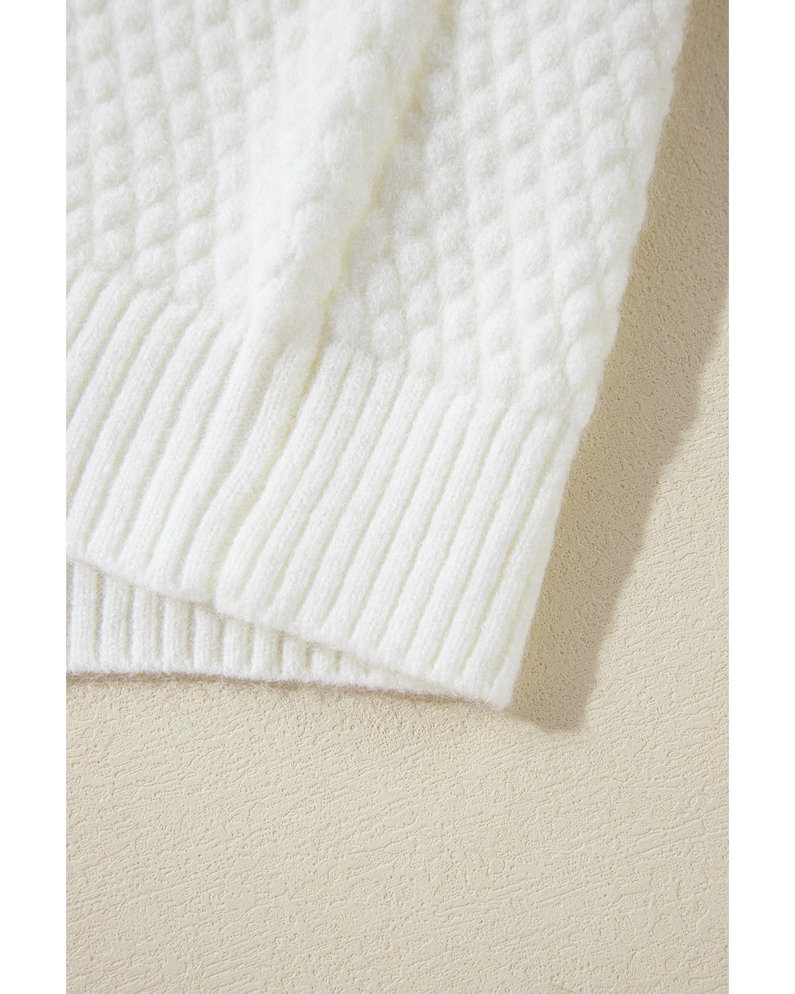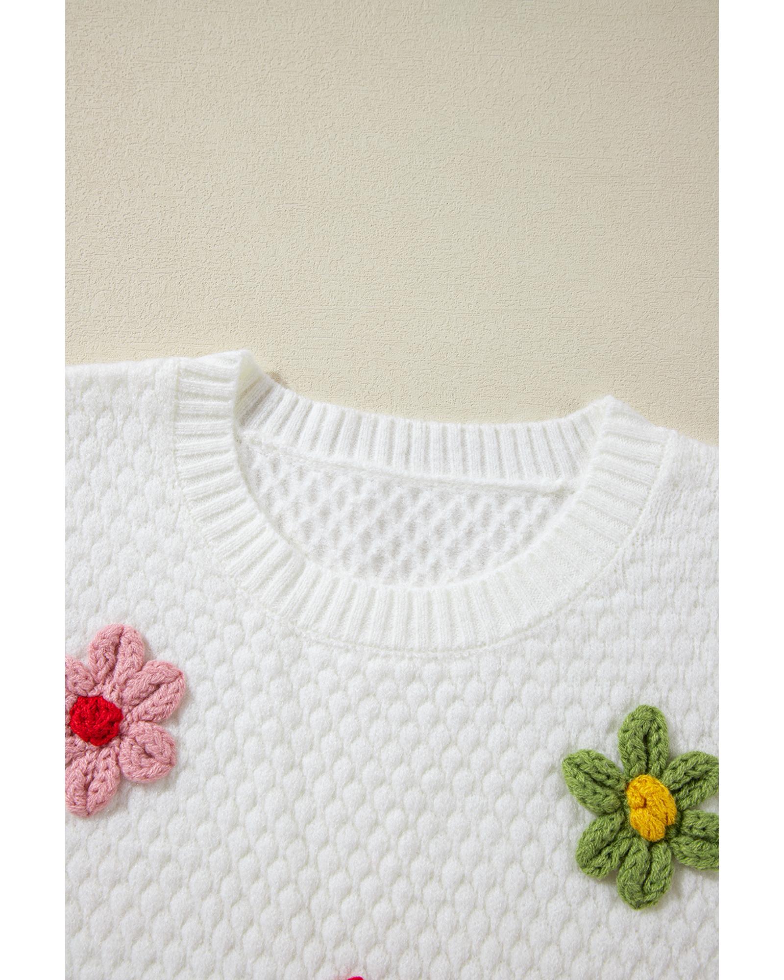 White Colorful Flower Applique Textured Knit Sweater – XL