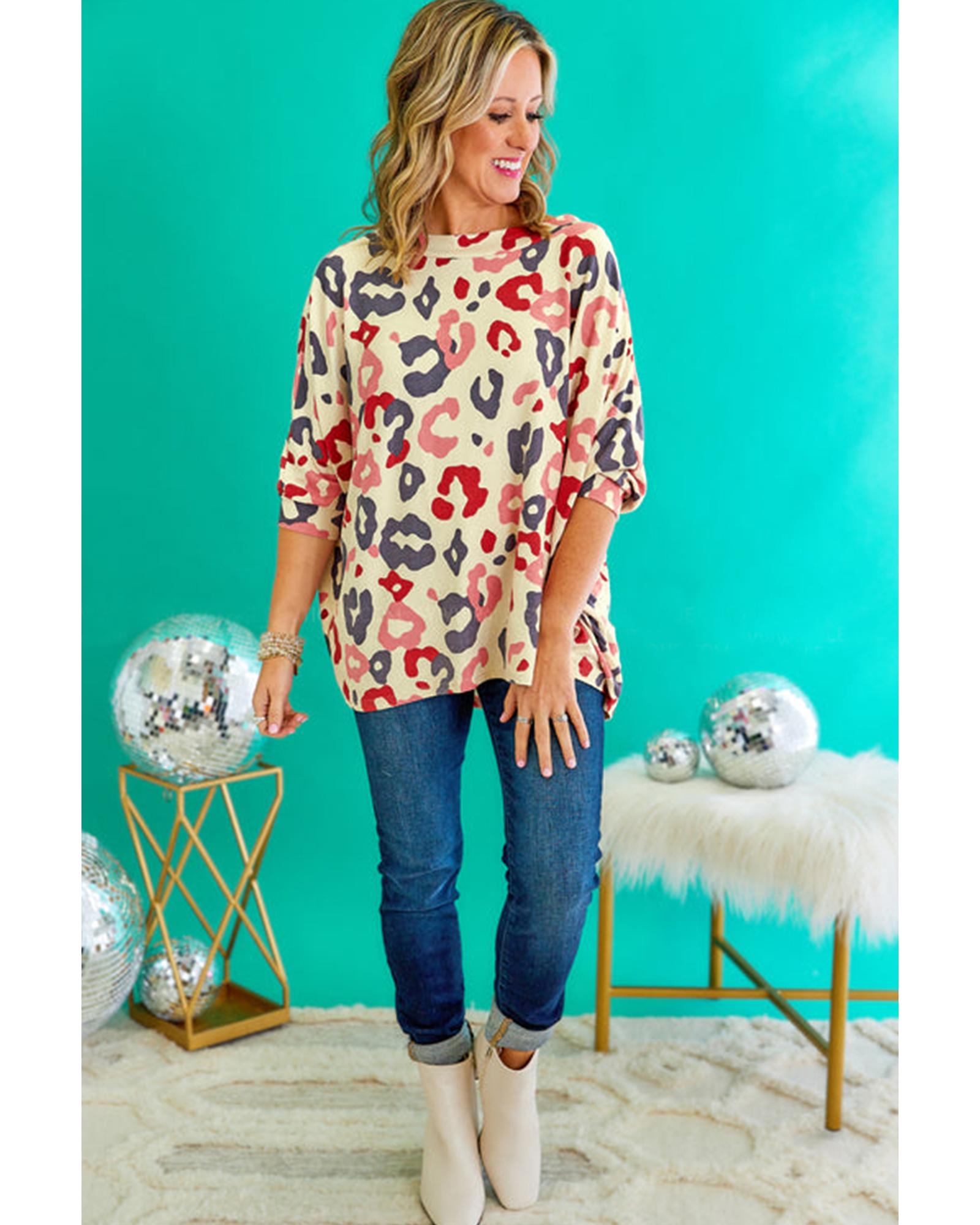 White Colorful Leopard Print Batwing Sleeve Plus Jumper – 2X