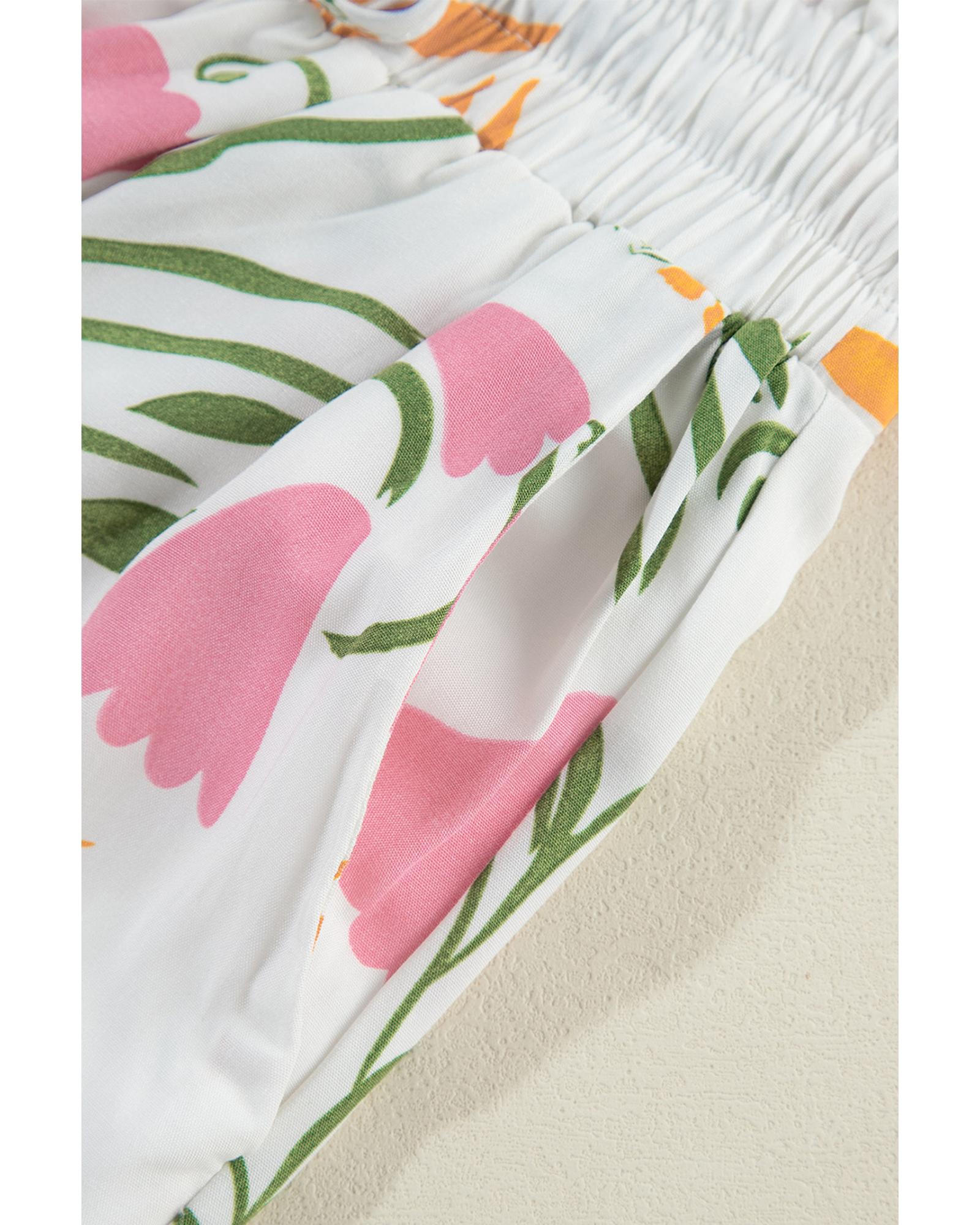 - White Colorful Printed Square Neck Tank and Wide Leg Pants Set