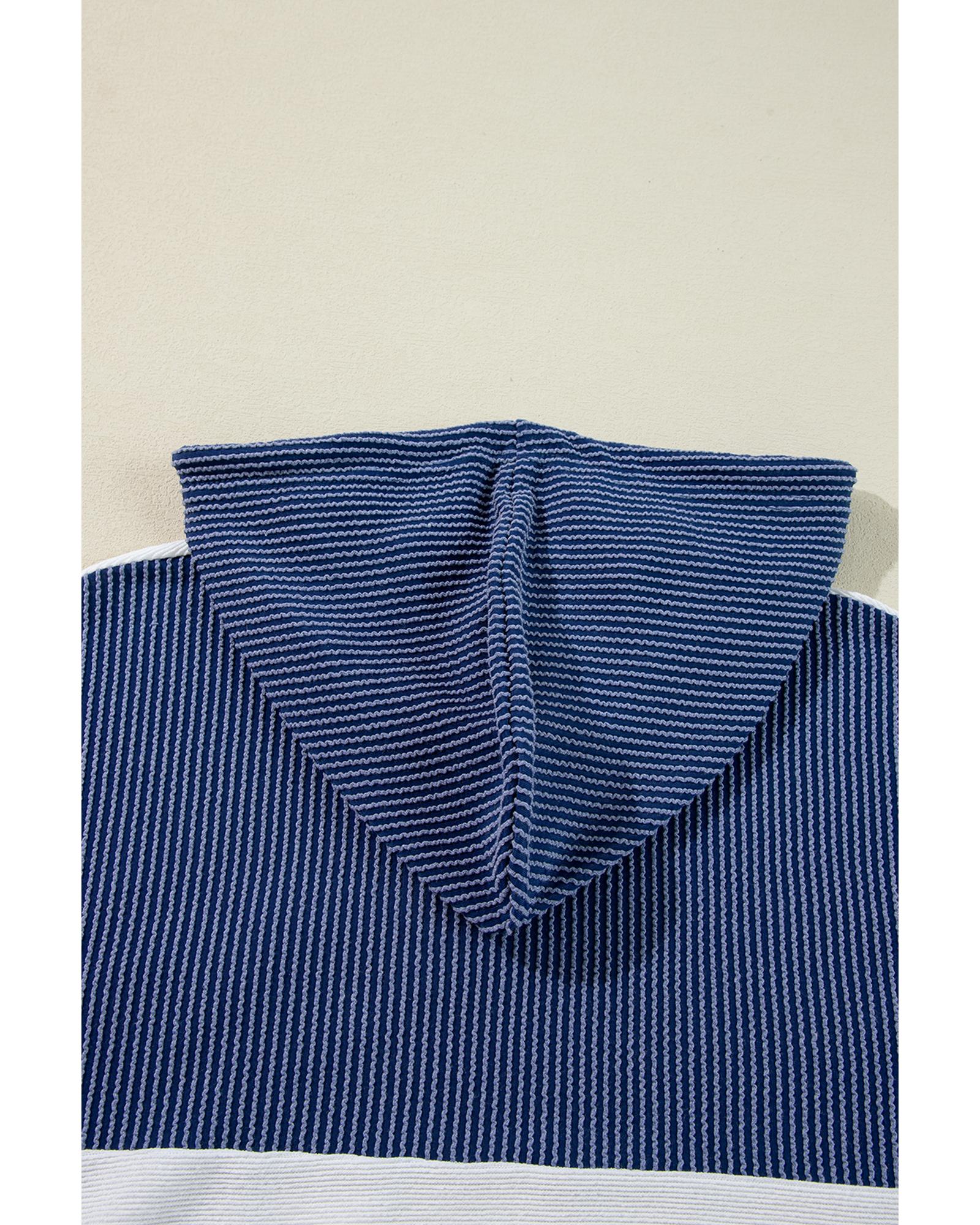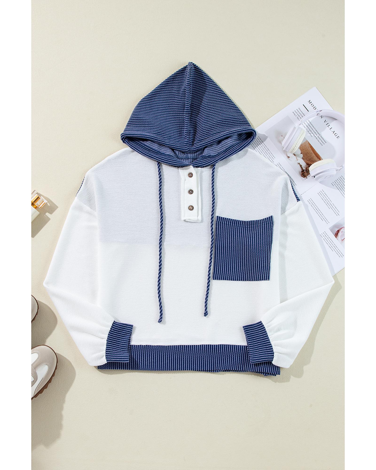 White Corded Colorblock Patch Pocket Drawstring Hooded Top – M