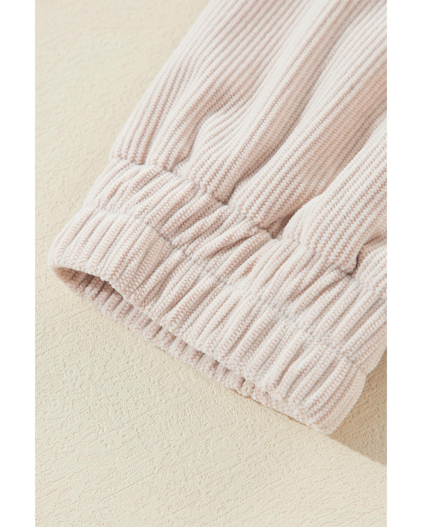 White Corduroy Drawstring Hooded Pocket Zip Up Jacket – S