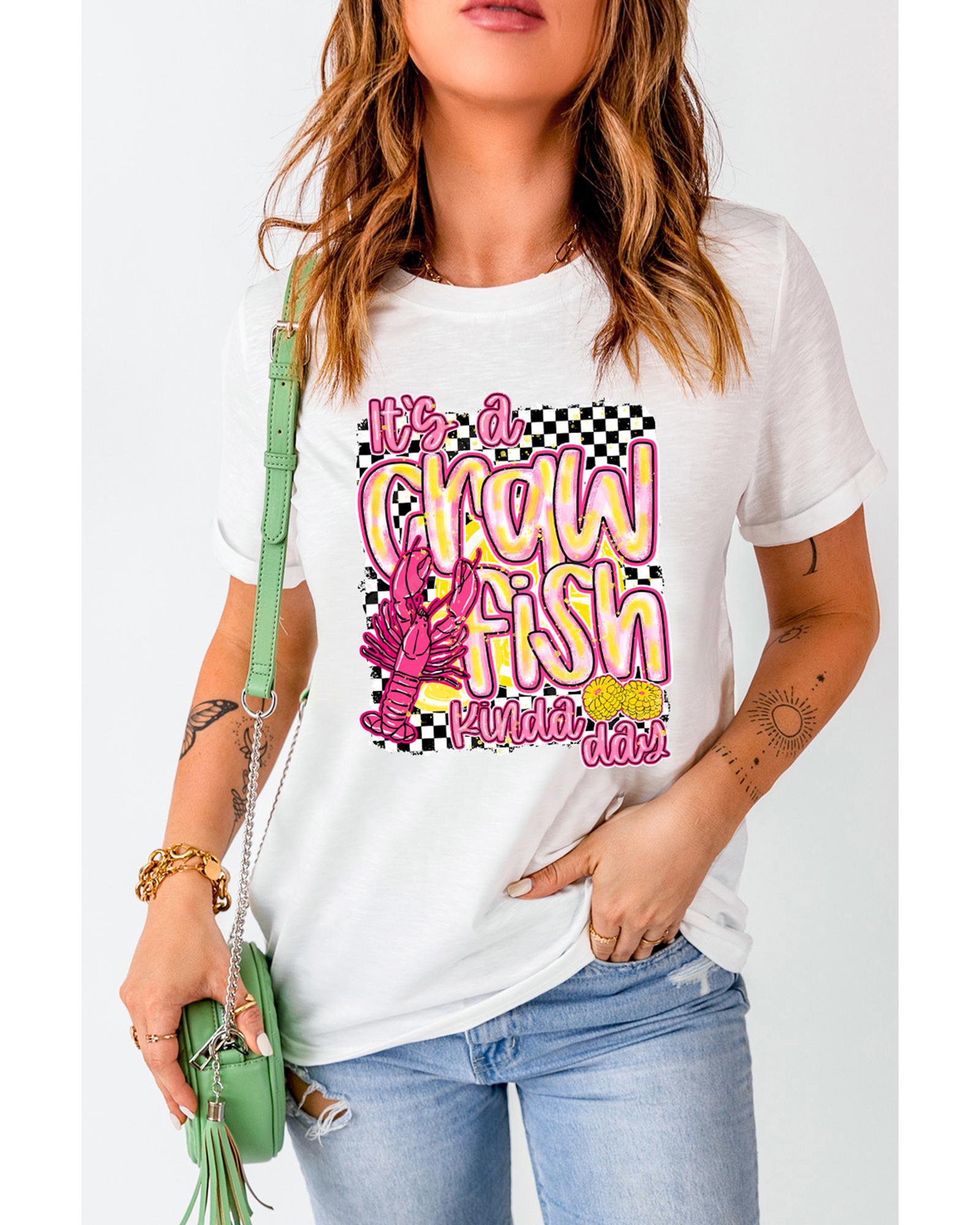 White Crawfish Checkered Pattern Graphic Tee – 2XL