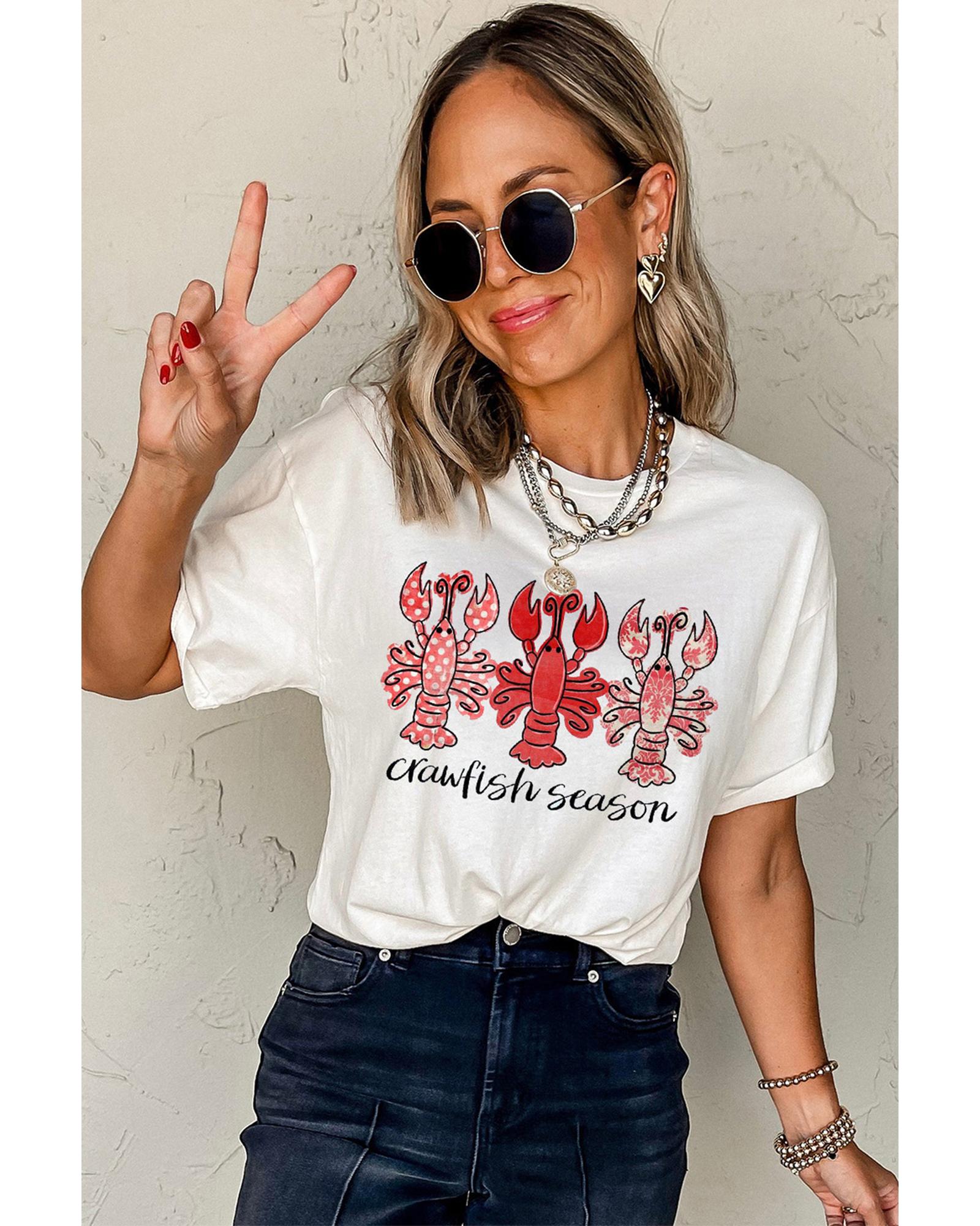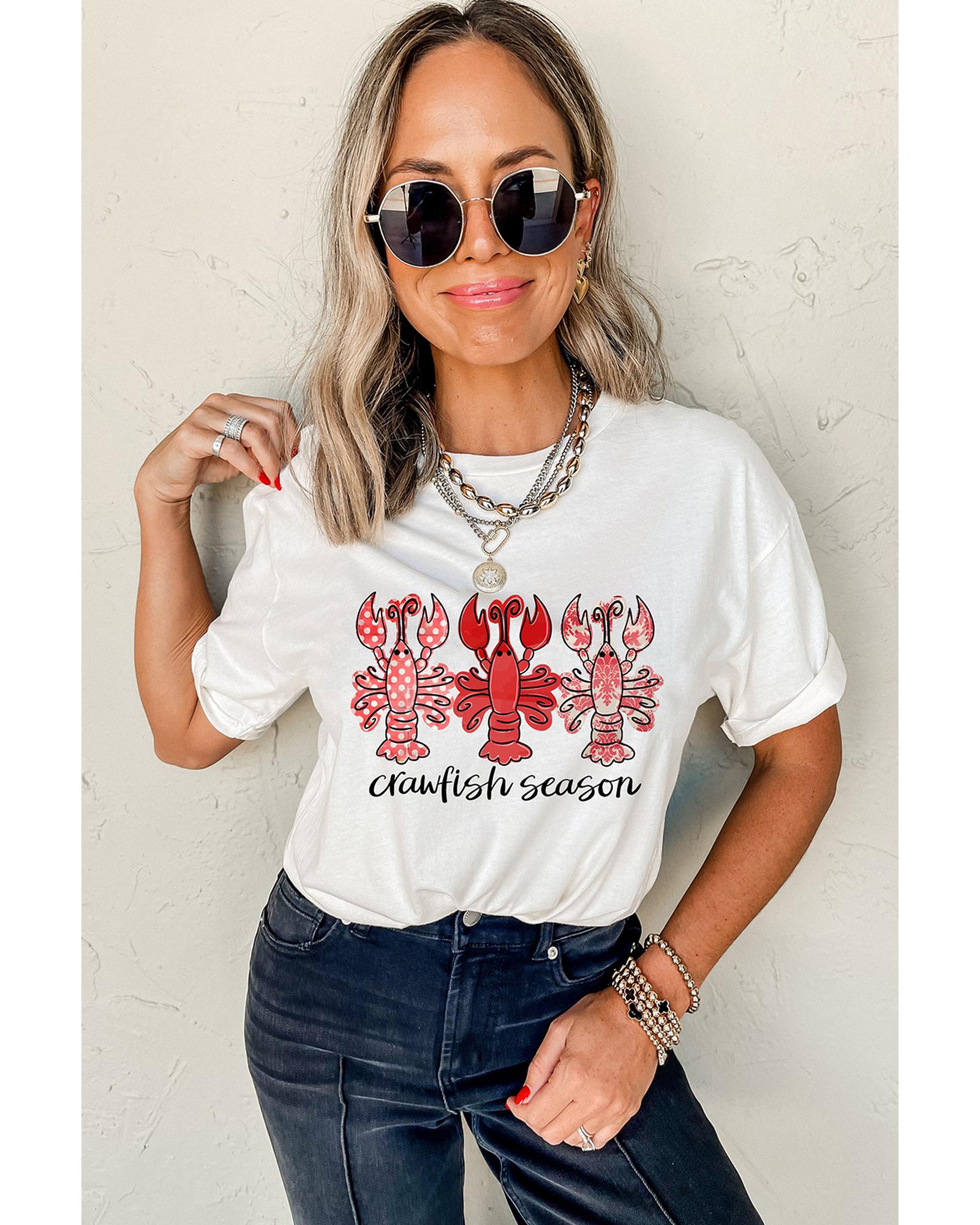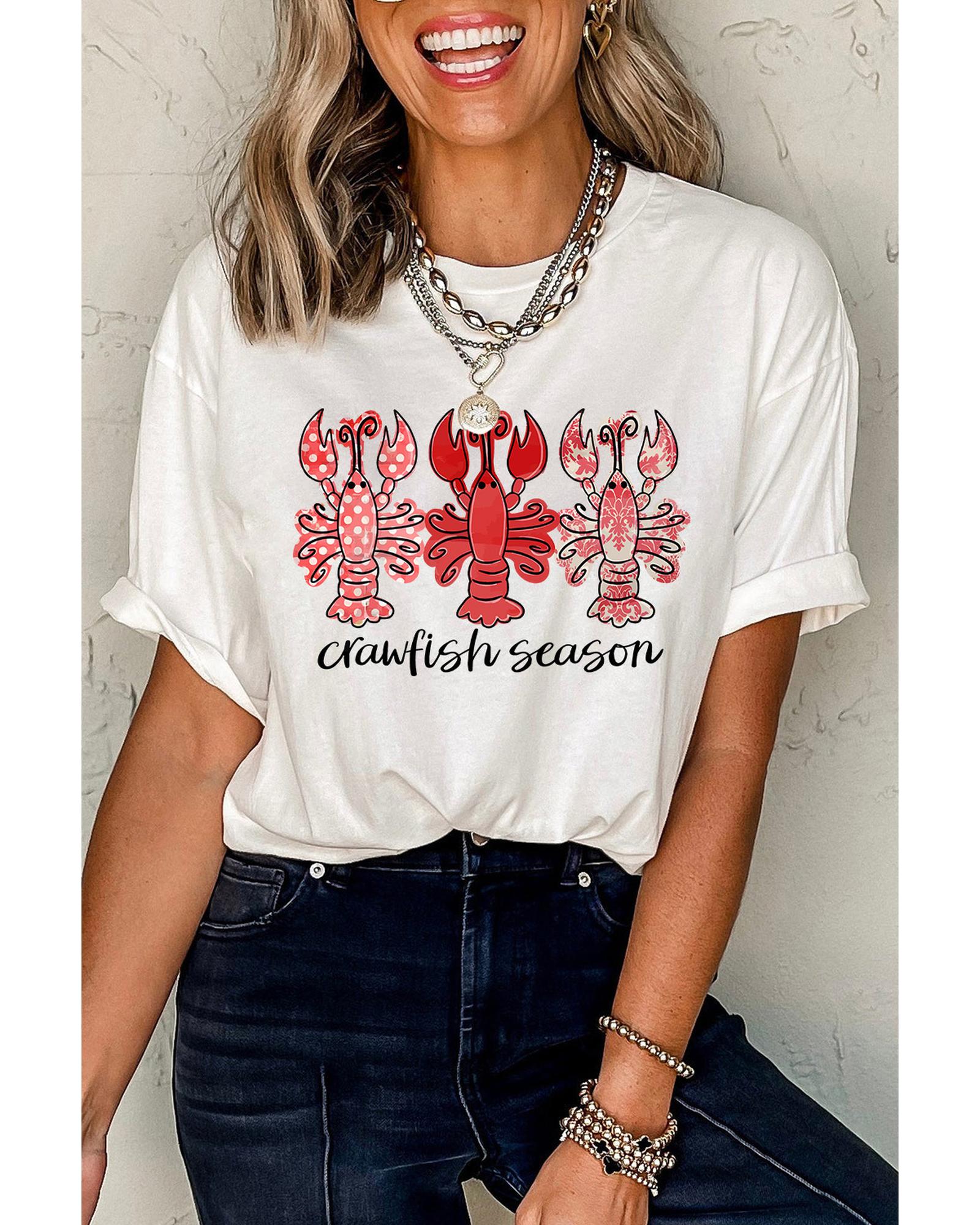 White Crawfish Season Fashion Graphic Crewneck T Shirt – XL