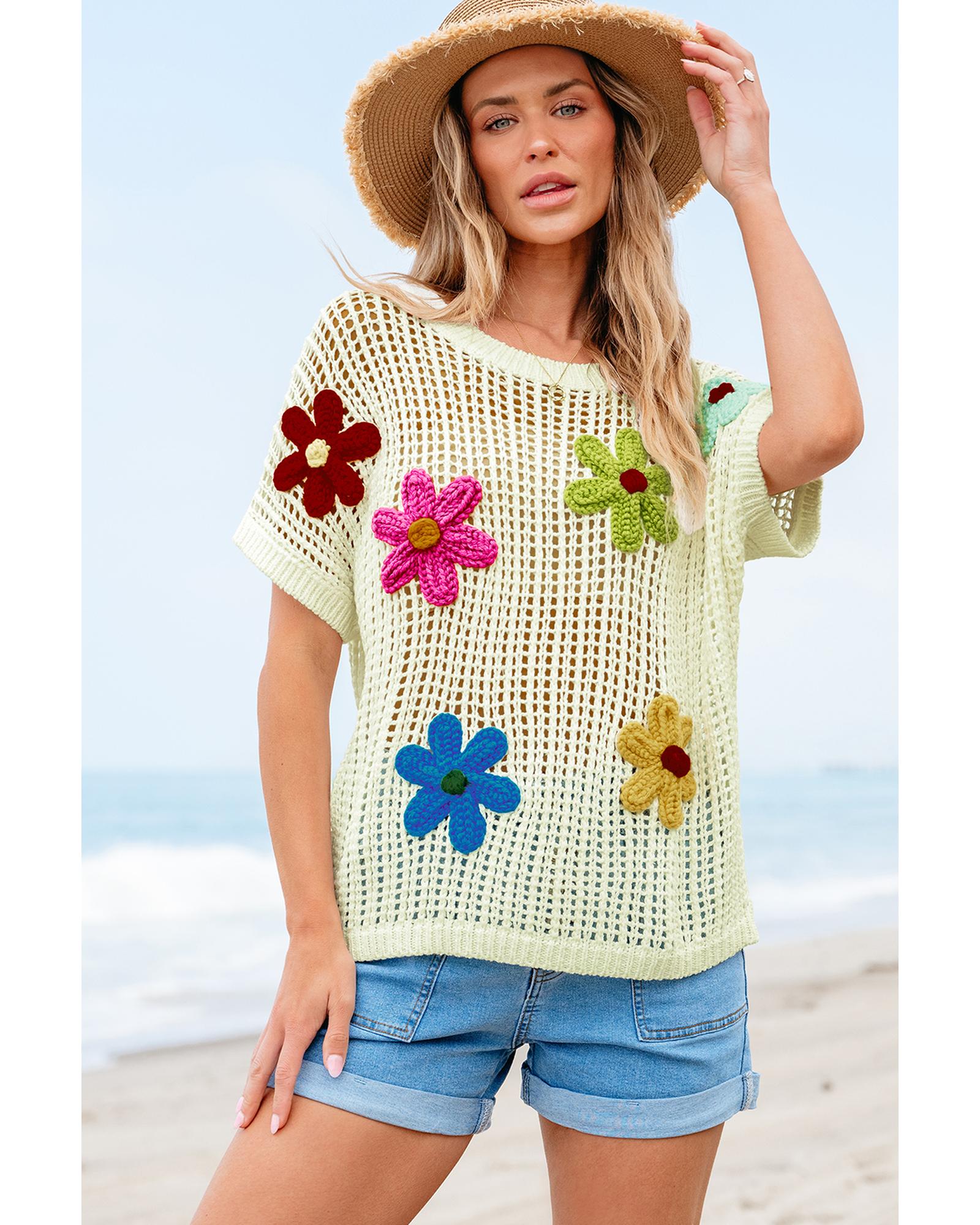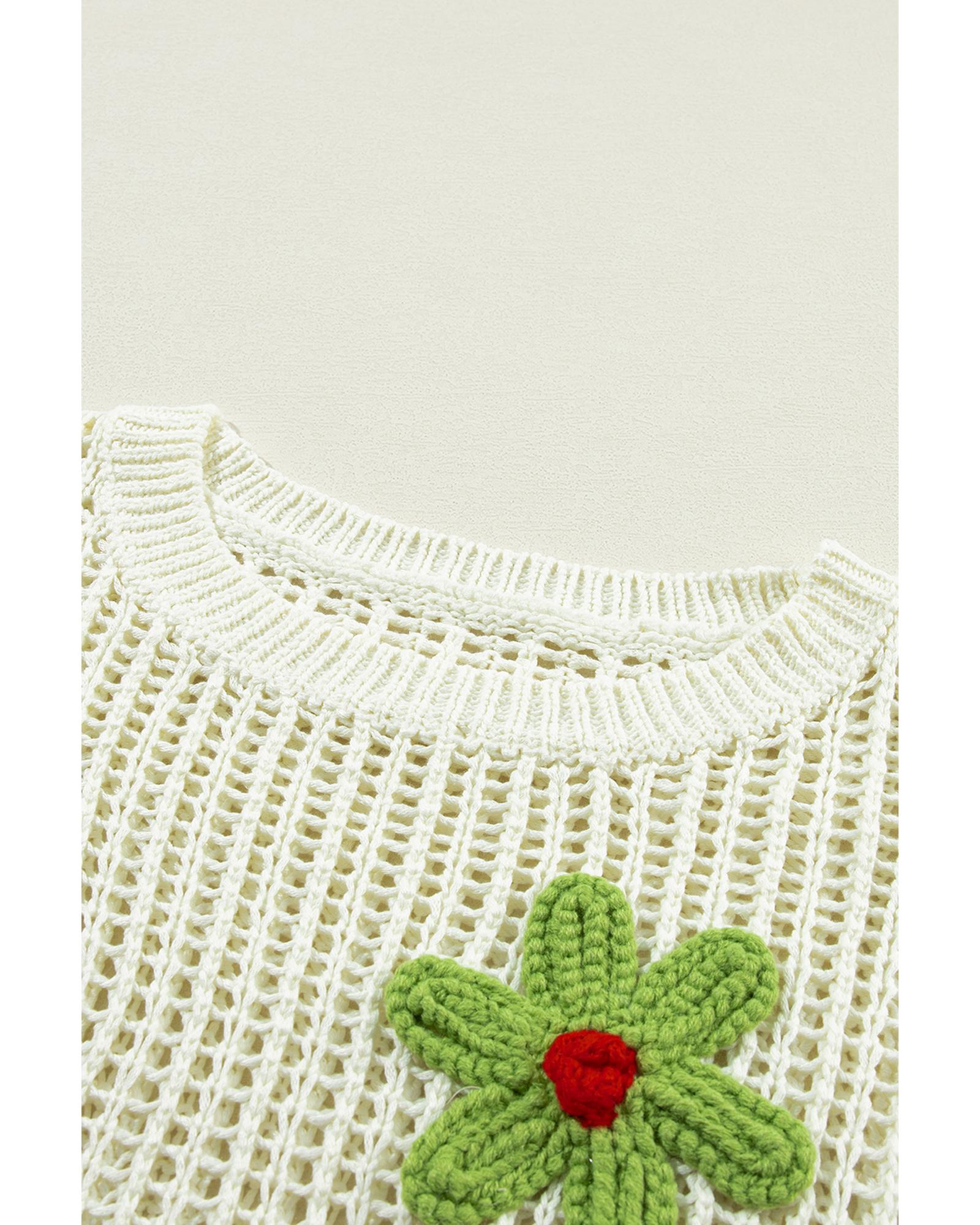 White Crochet Flower Hollow-out Sweater T Shirt – L