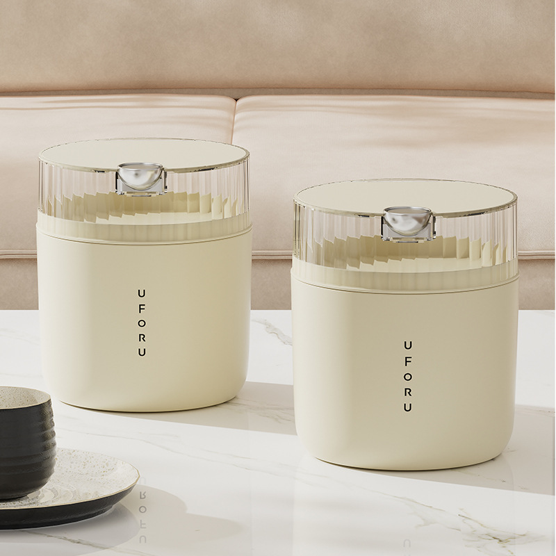 White desktop trash can (standard 1-roll garbage bag) 14cm * 15cm (including button) * 16cm
